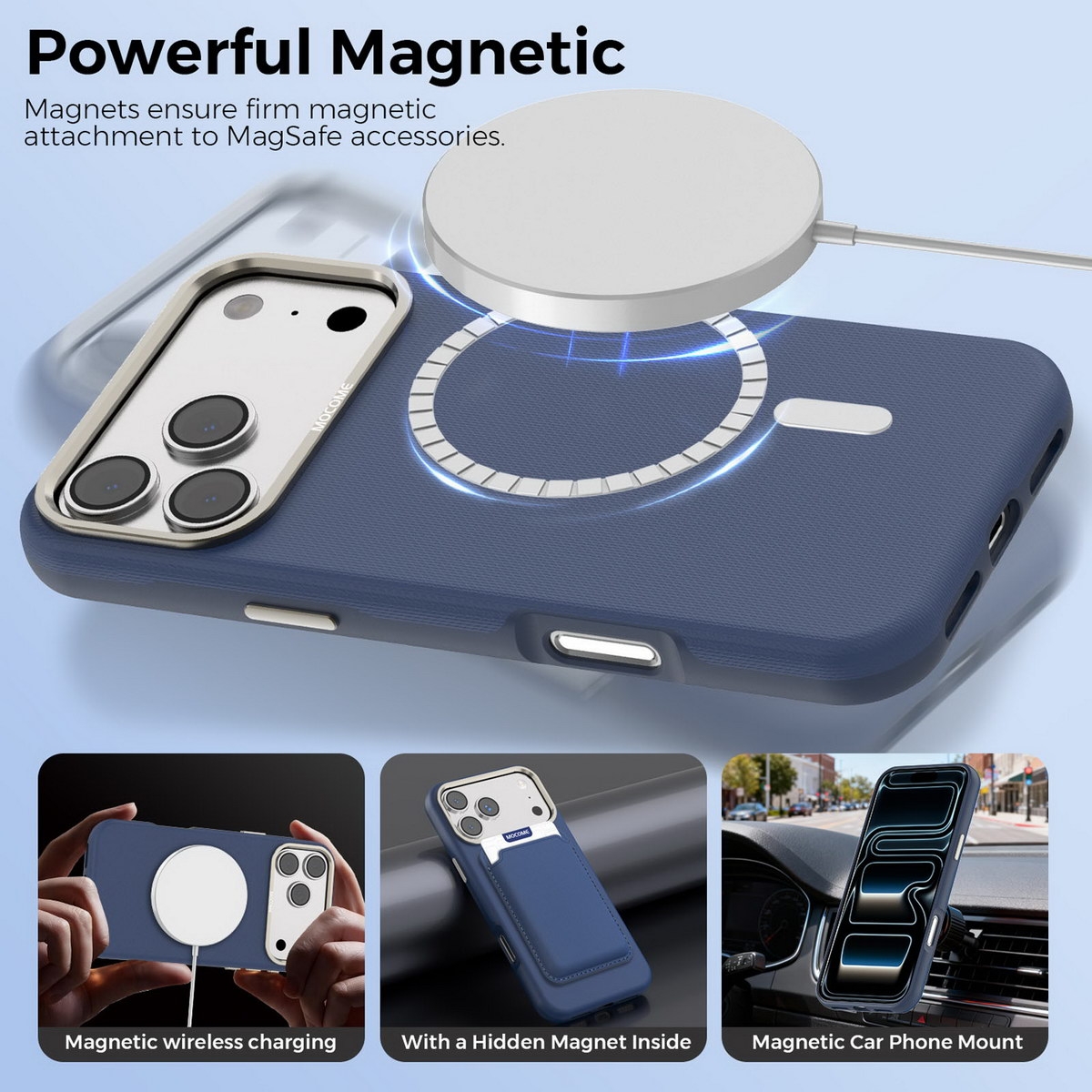 Matte Grid Texture Case for iPhone 17 Pro Max - Metal Camera Frame & Magnetic Charging Support, Blue