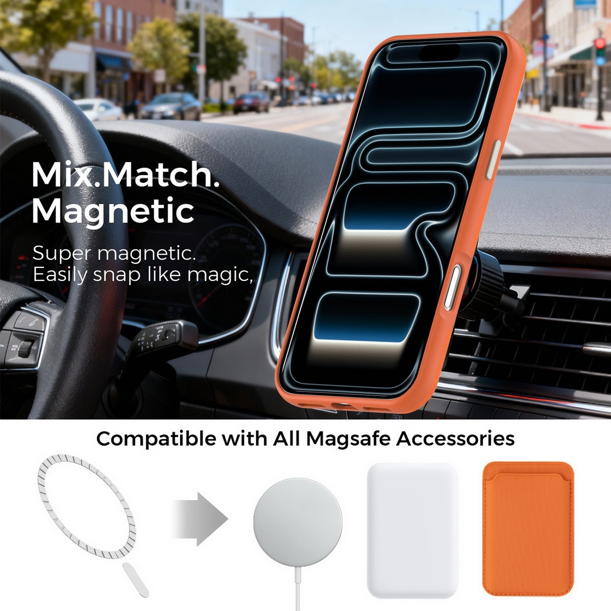 Matte Grid Texture Case for iPhone 17 Pro Max - Metal Camera Frame & Magnetic Charging Support, Orange