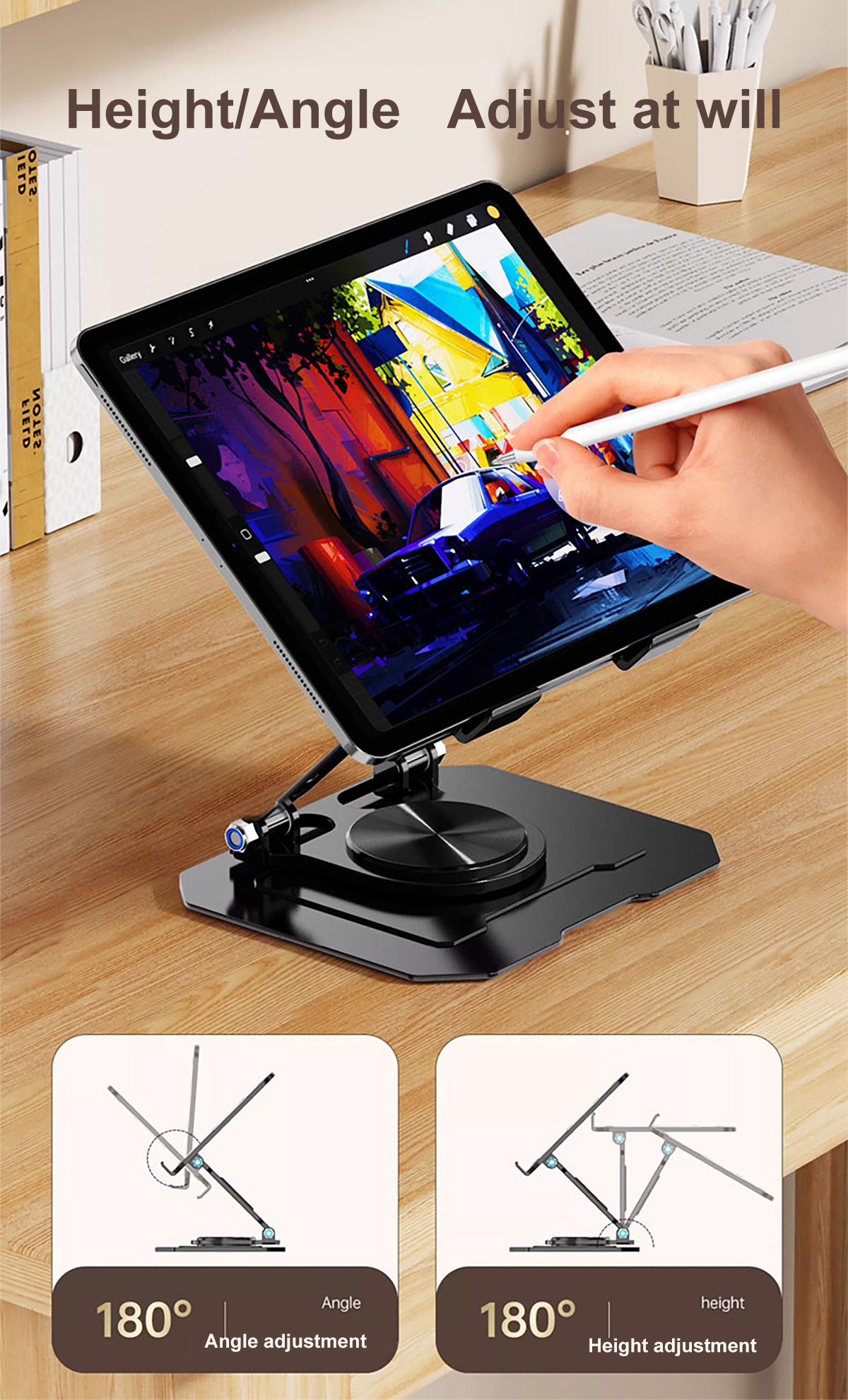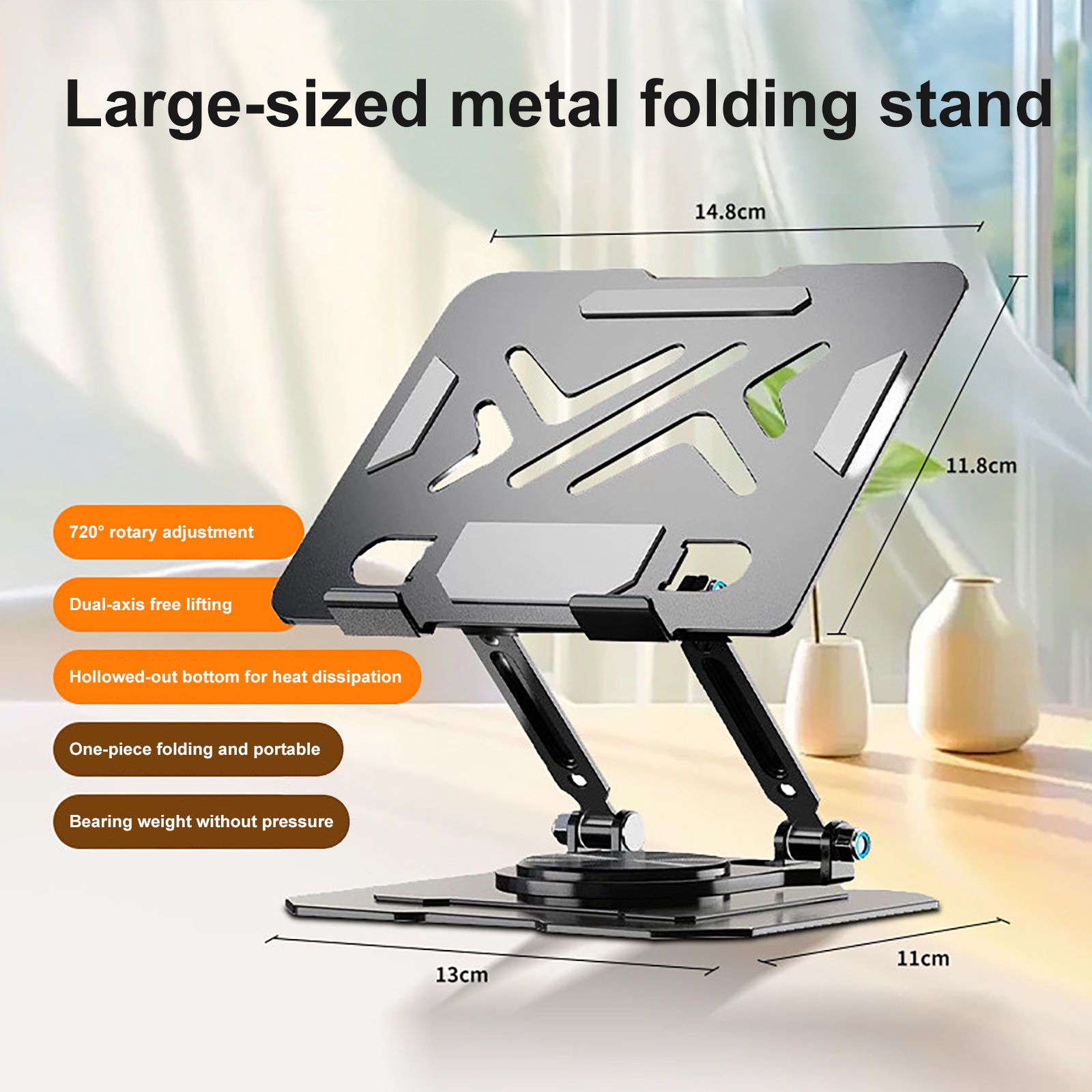 Metal Laptop Stand - 360° Rotating Cooling Foldable Riser, Black