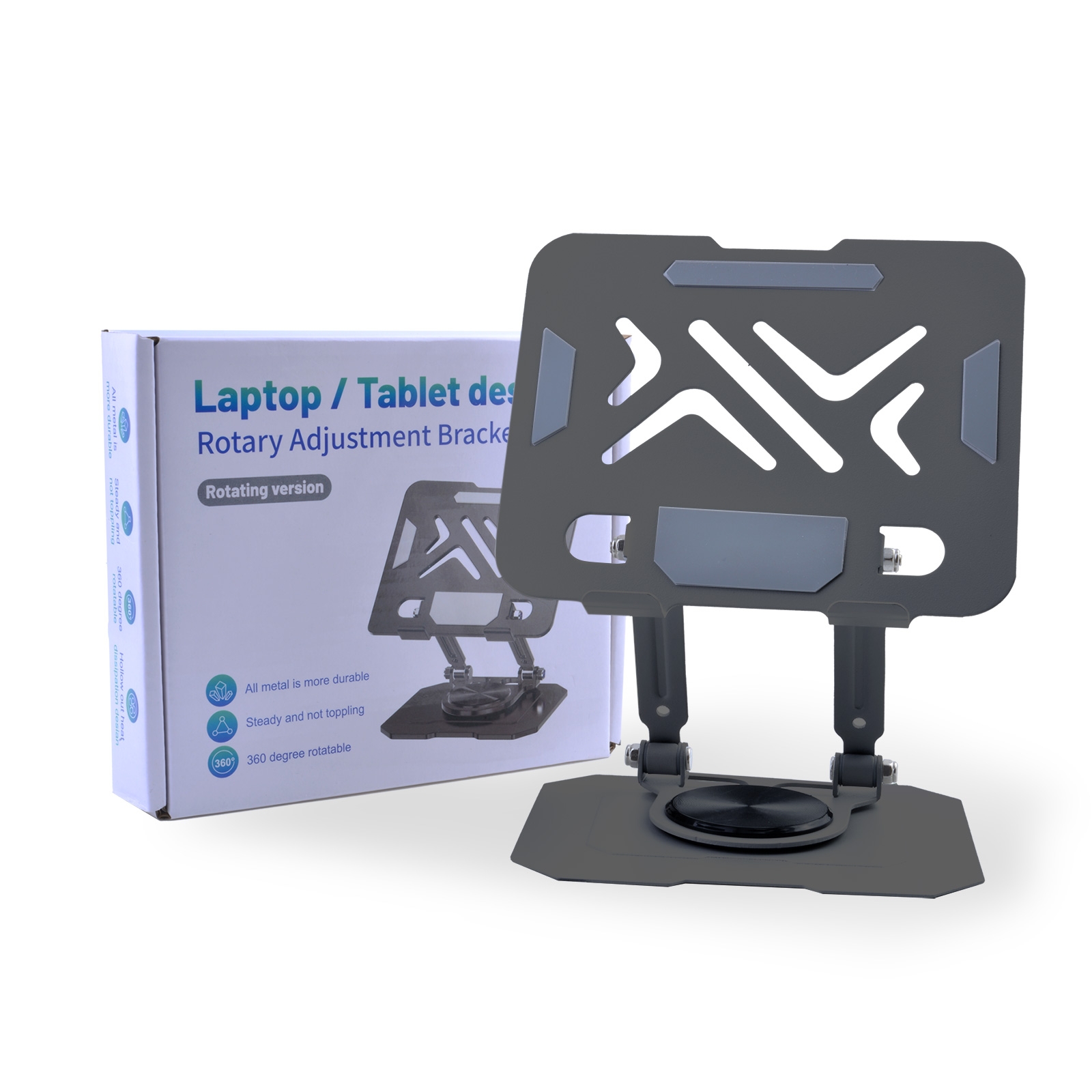 Metal Laptop Stand - 360° Rotating Cooling Foldable Riser, Silver