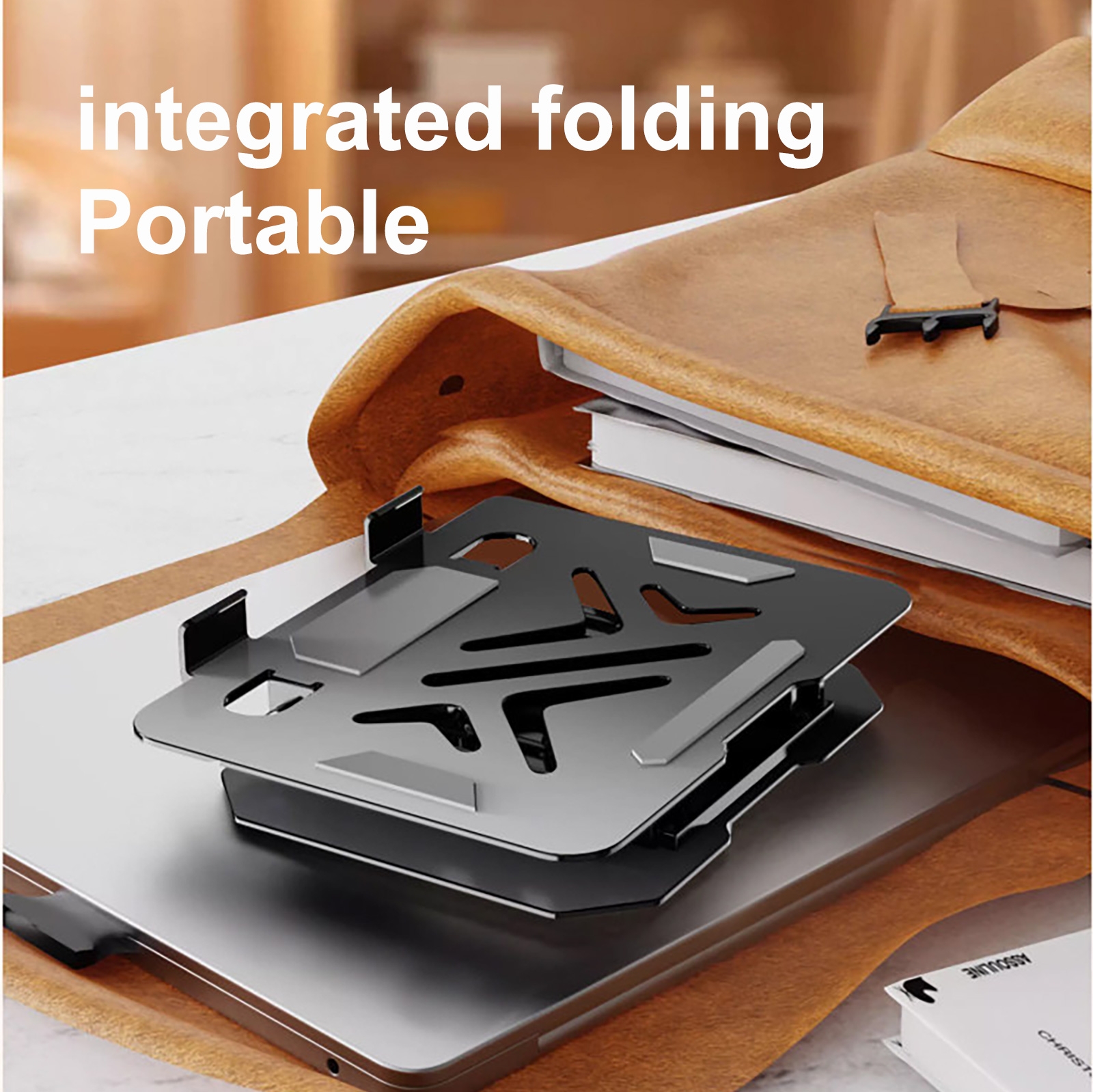 Metal Laptop Stand - 360° Rotating Cooling Foldable Riser, Black