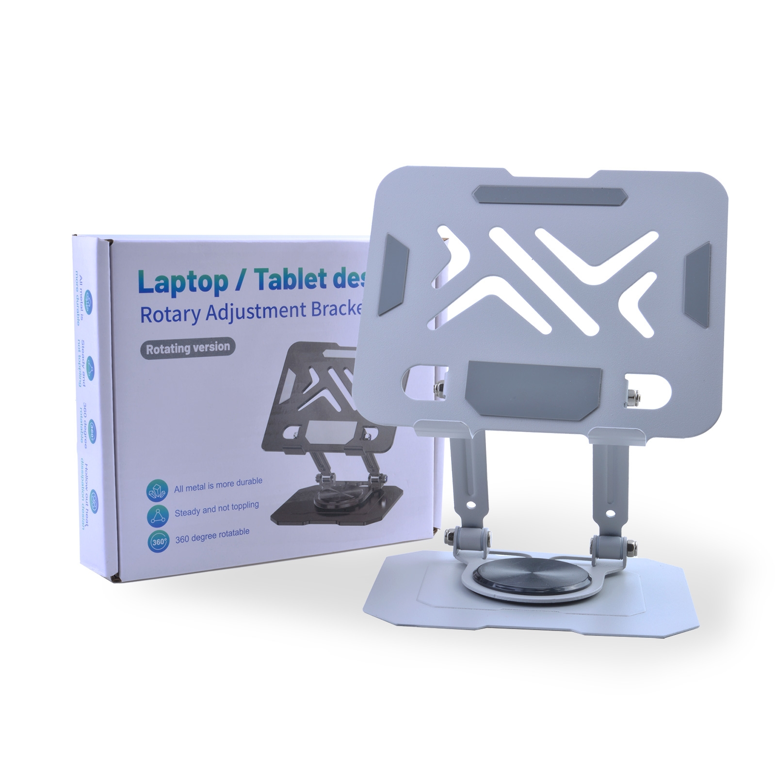 Metal Laptop Stand - 360° Rotating Cooling Foldable Riser, Silver