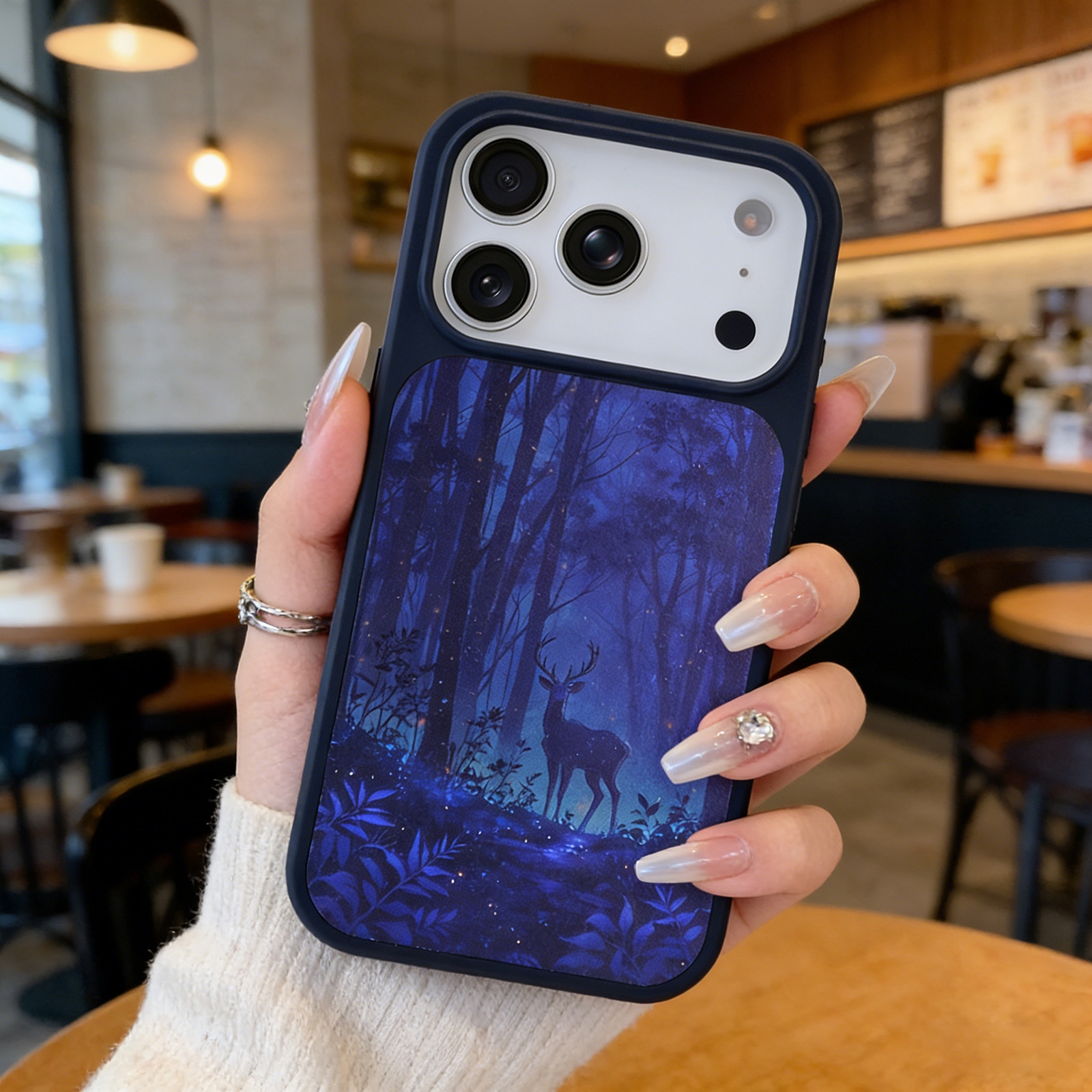 Moonlit Deer in Forest Magnetic Phone Case for iPhone 17 Pro, Black