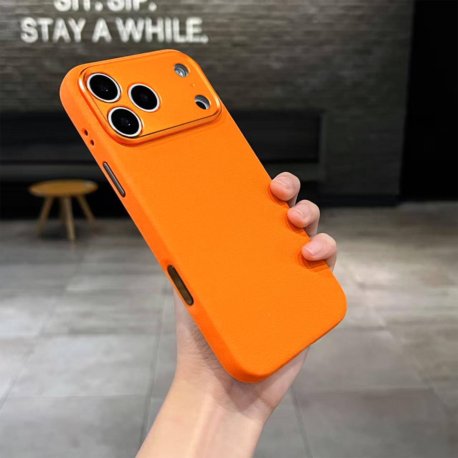 iPhone 17 Pro Max PU Leather Case – Calf-Pattern Back Cover