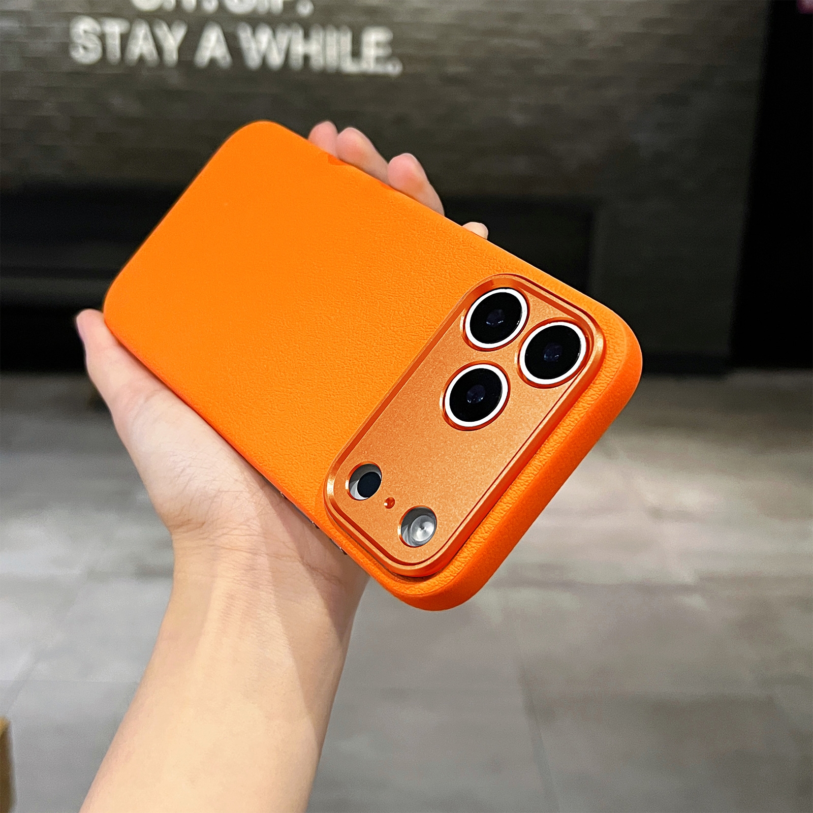 Orange iPhone 17 Pro Max Magnetic PU Leather Case – Precise Cutouts