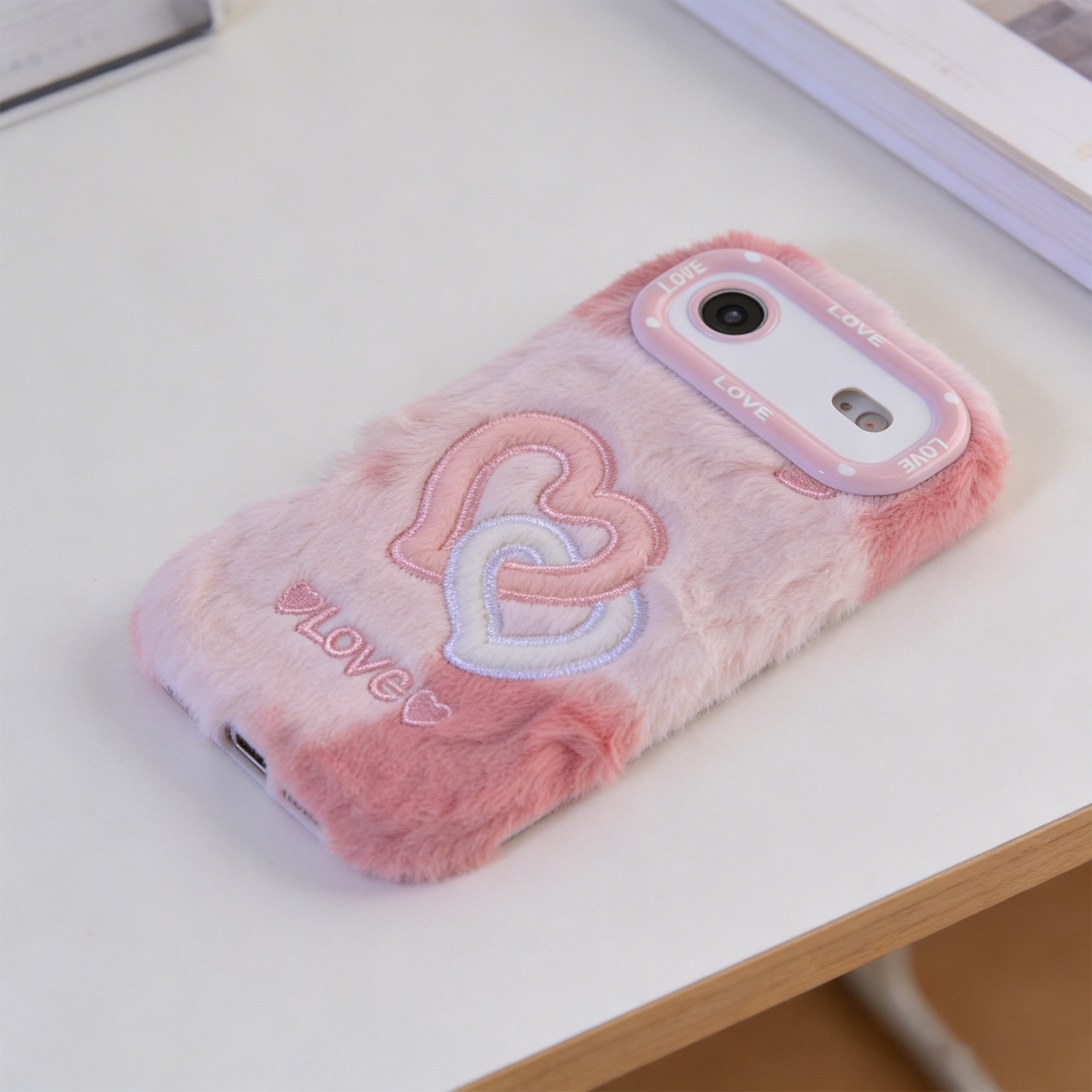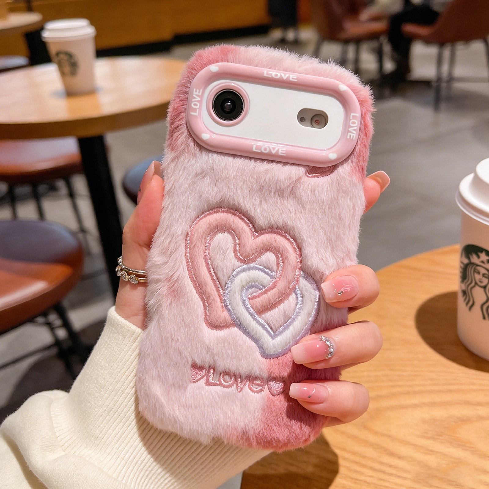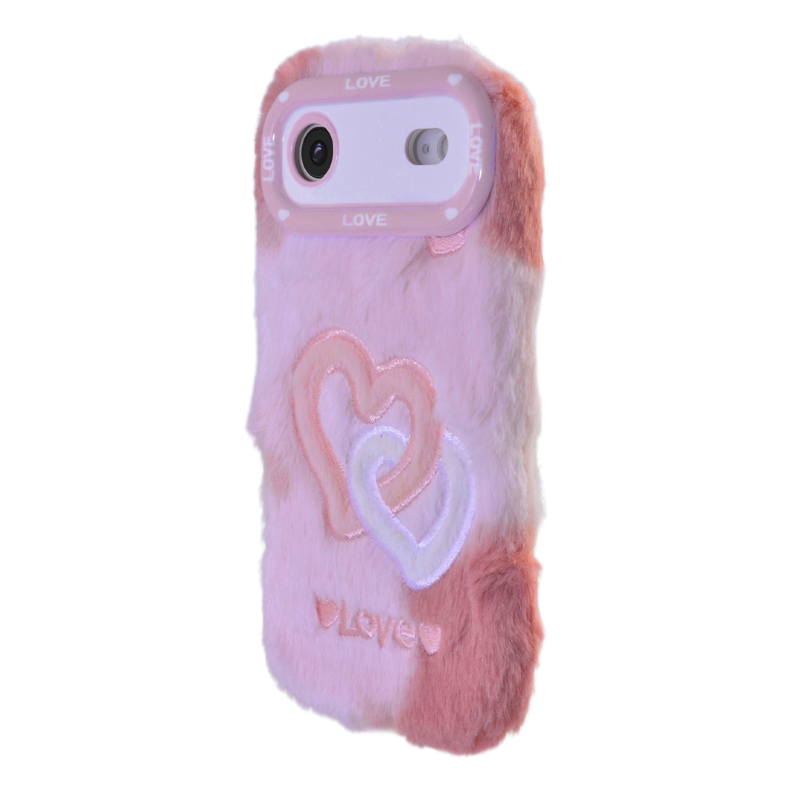 Pink Plush Silicone Double Heart Phone Case for iPhone Air – Soft Furry Cute Protective Cover