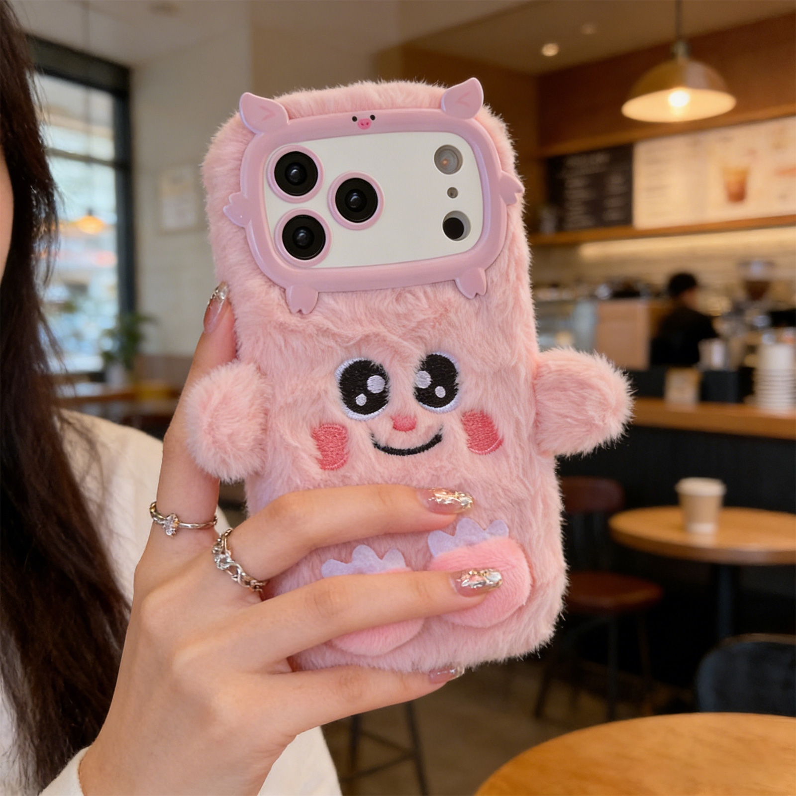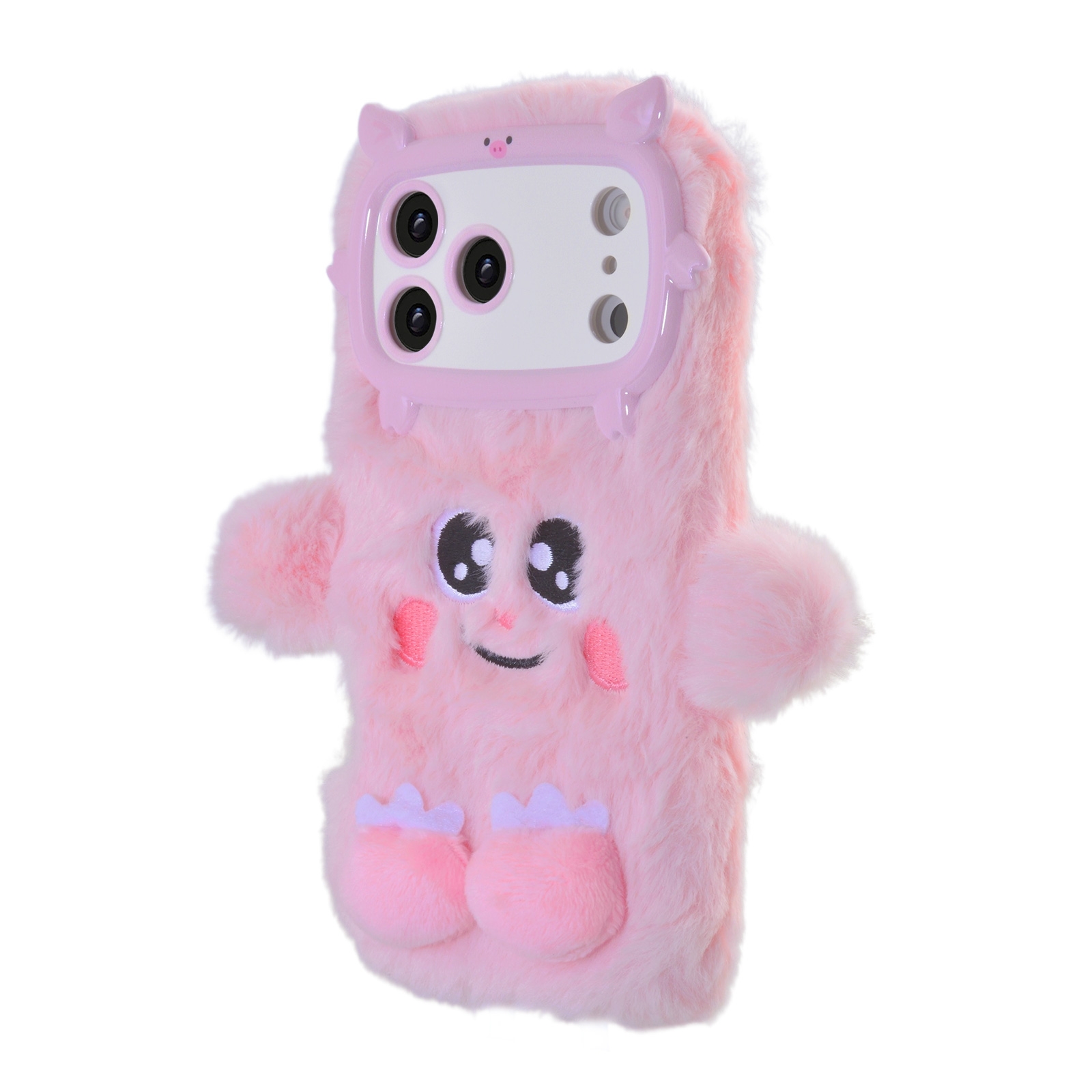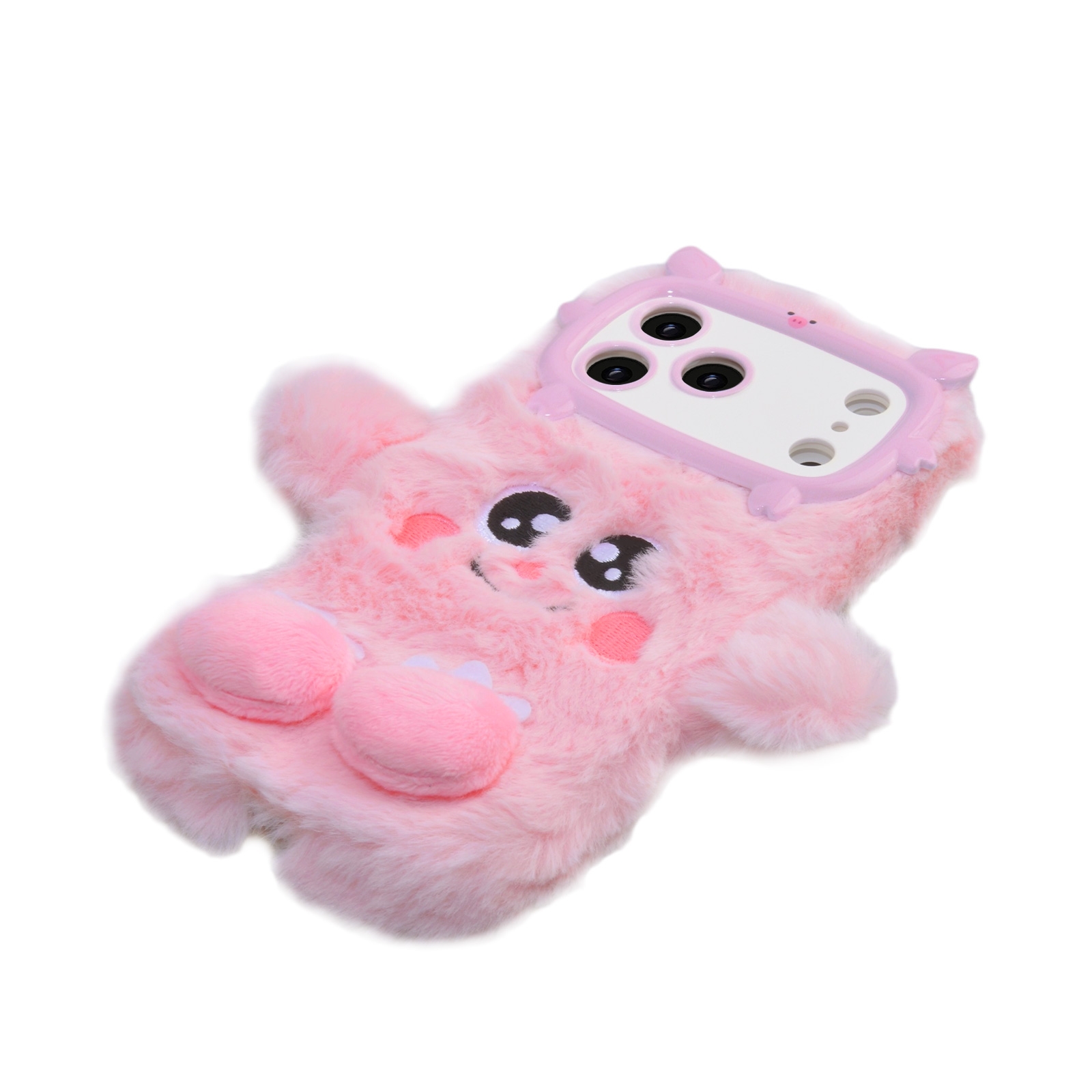 Pink Plush Silicone Monster Phone Case for iPhone 17 Pro Max – Soft Furry Cute Protective Cover