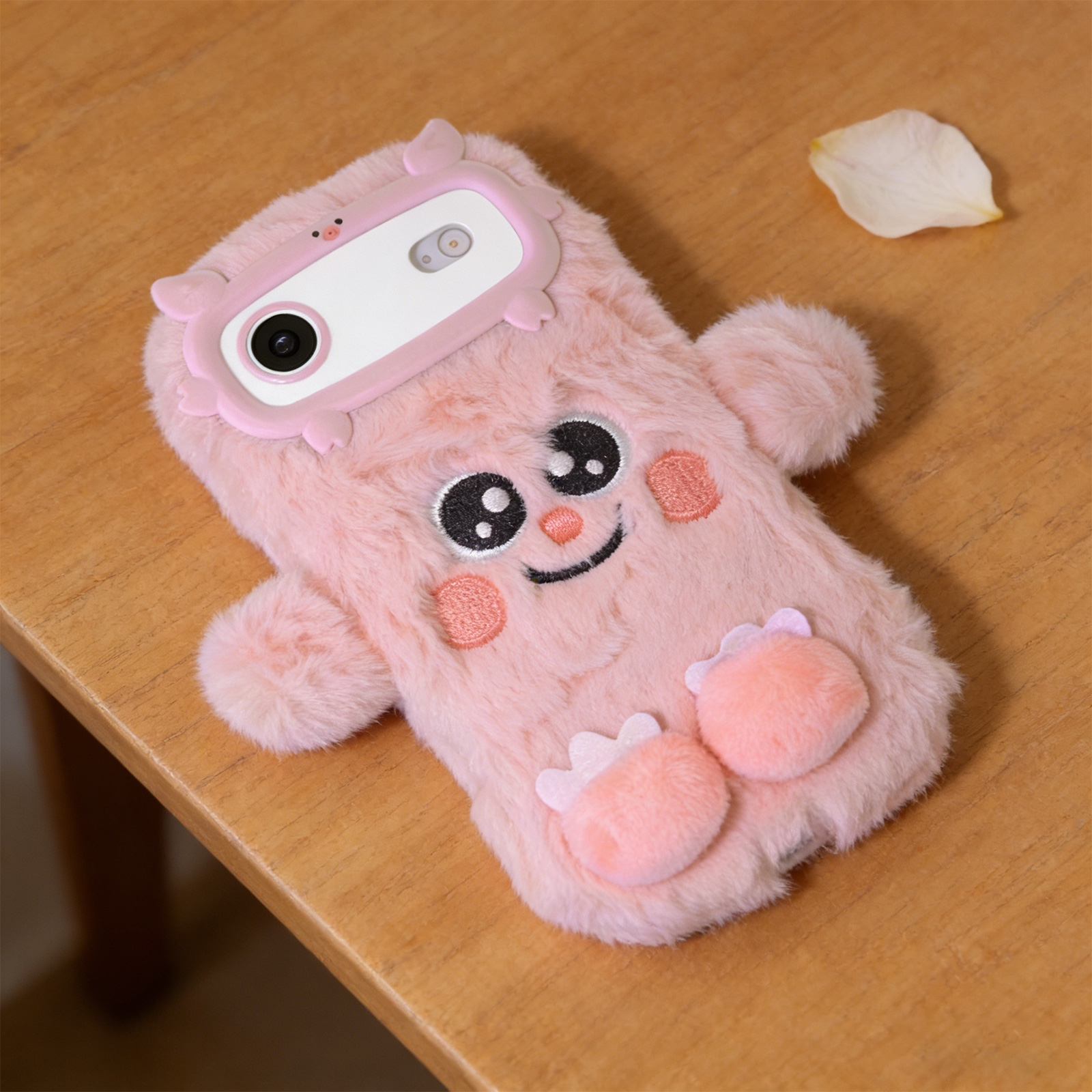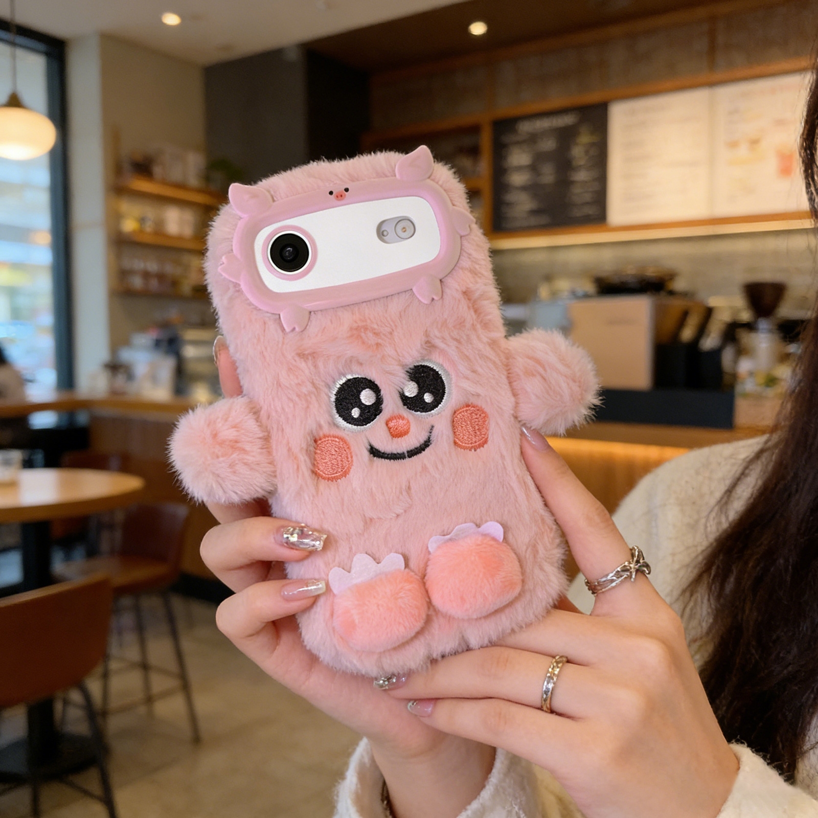 Pink Plush Silicone Monster Phone Case for iPhone Air – Soft Furry Cute Protective Cover