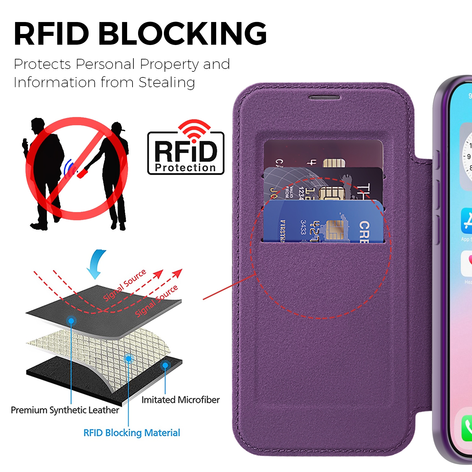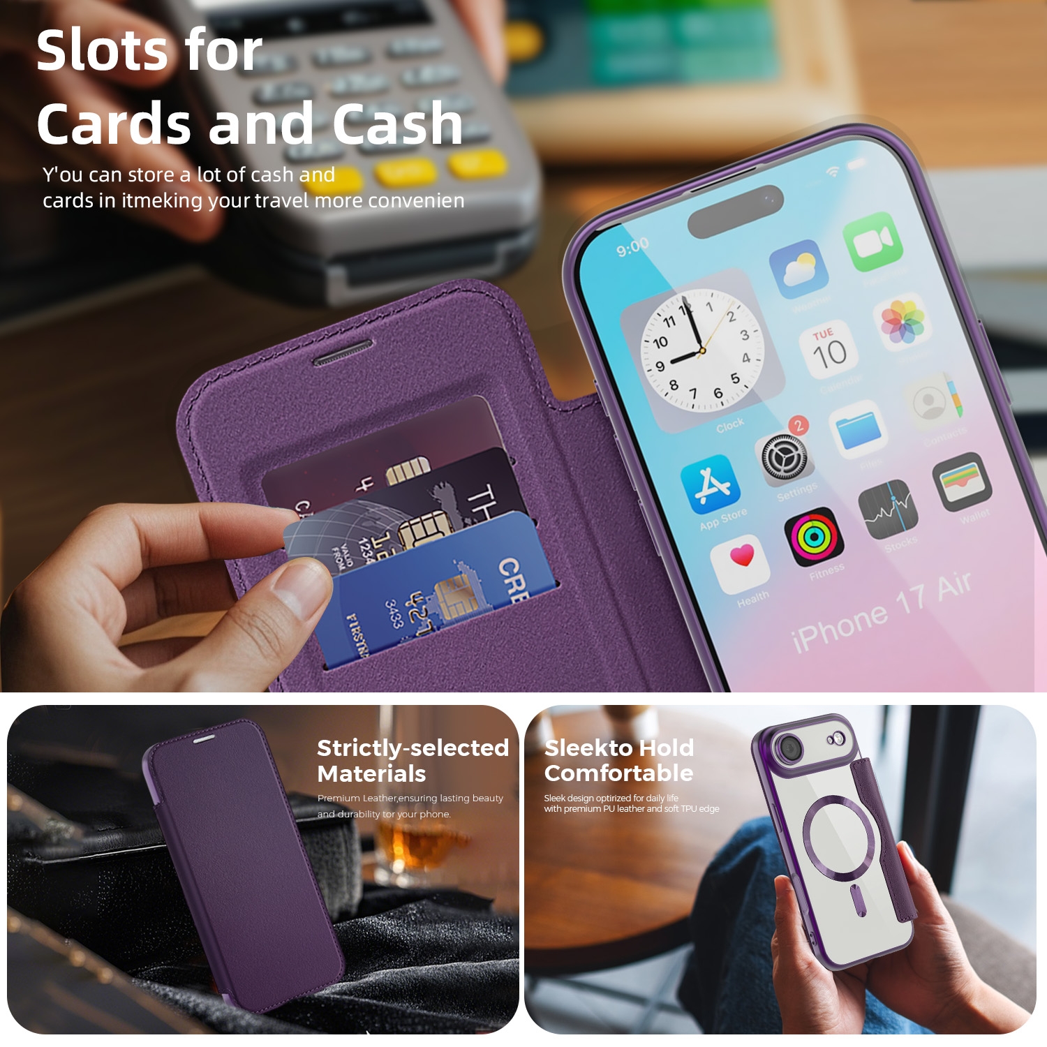 Premium Business PU Folio Case for iPhone Air, Purple