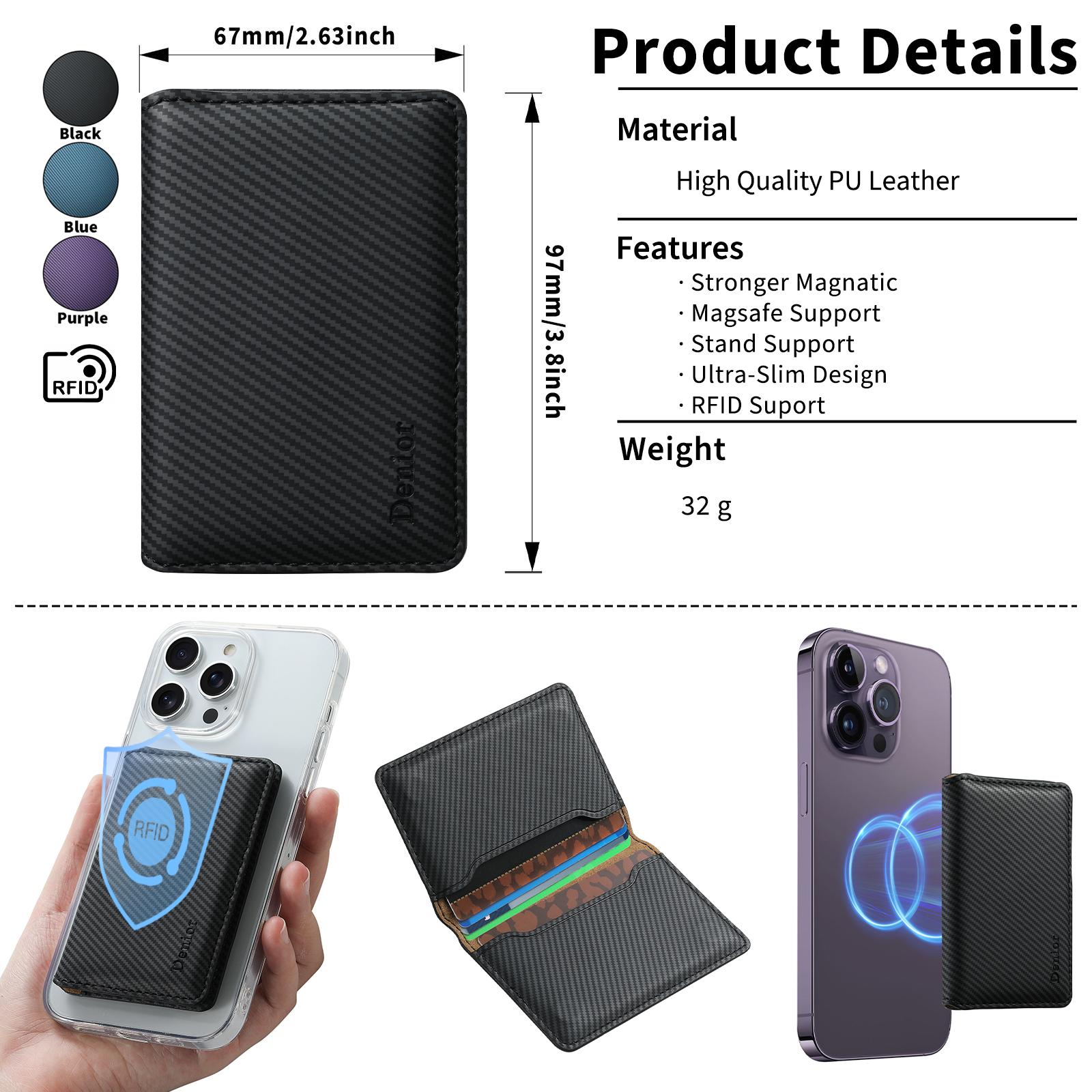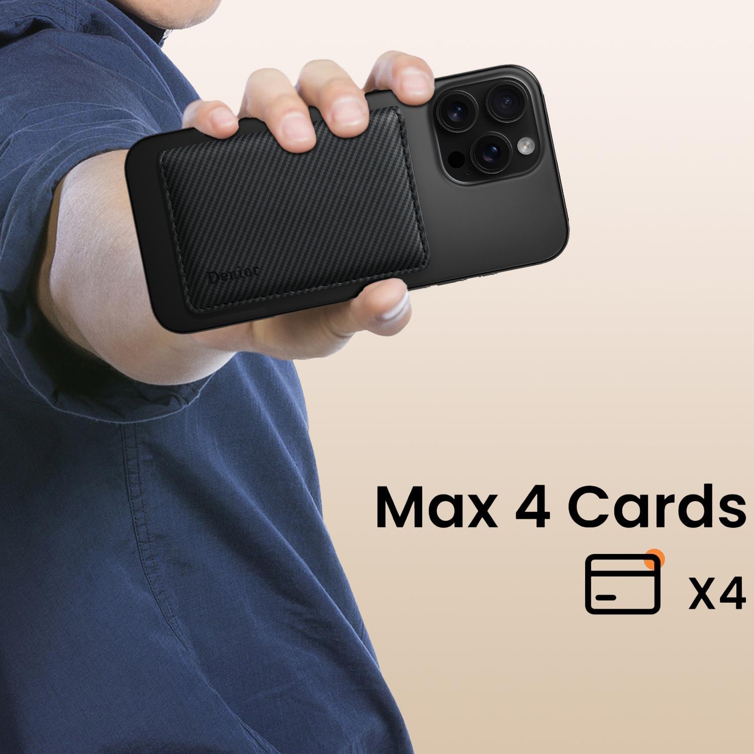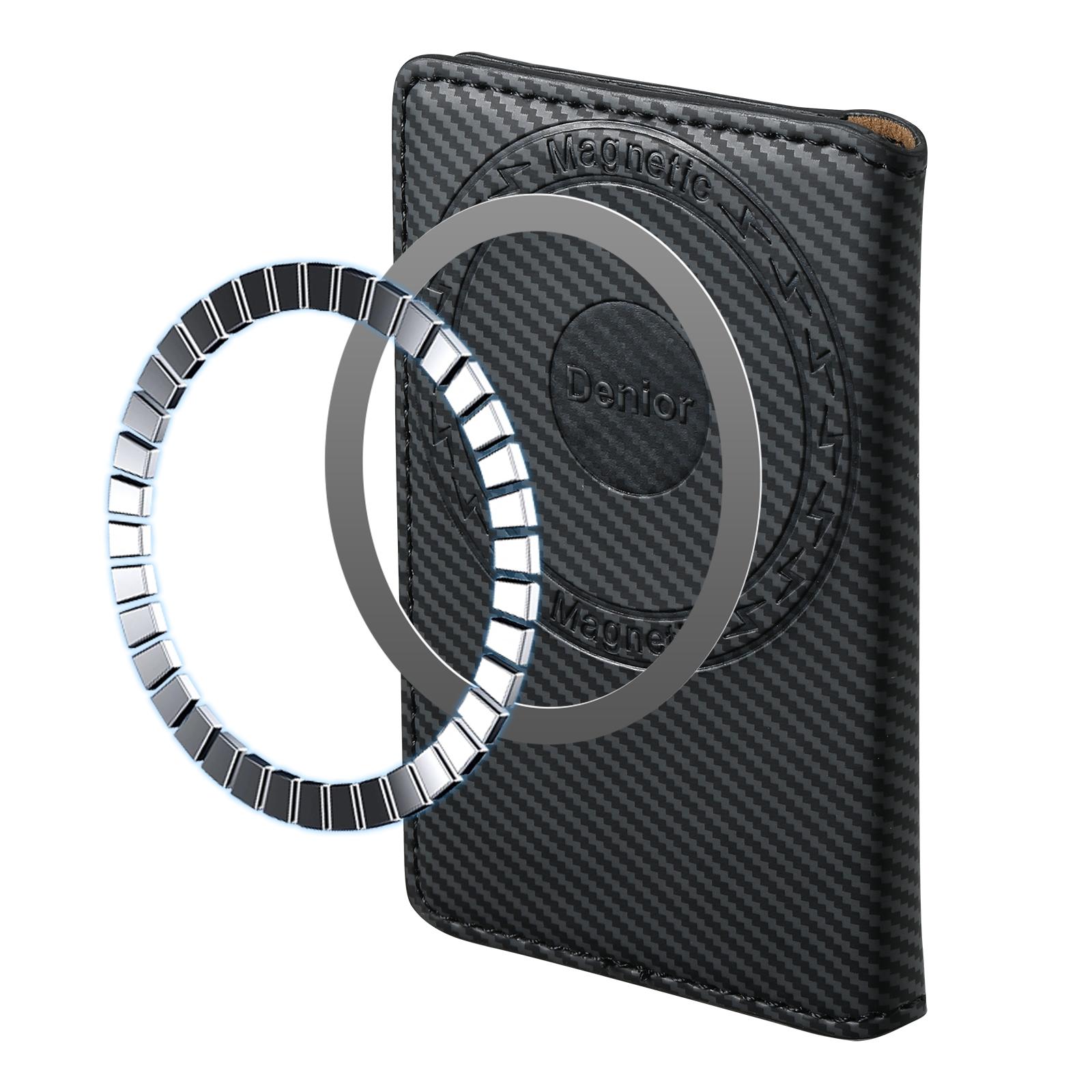 Denior PU Faux Leather Carbon Fiber Pattern N52 Magnetic RFID Blocking Card Holder | PU | Holds 3 Cards - Black