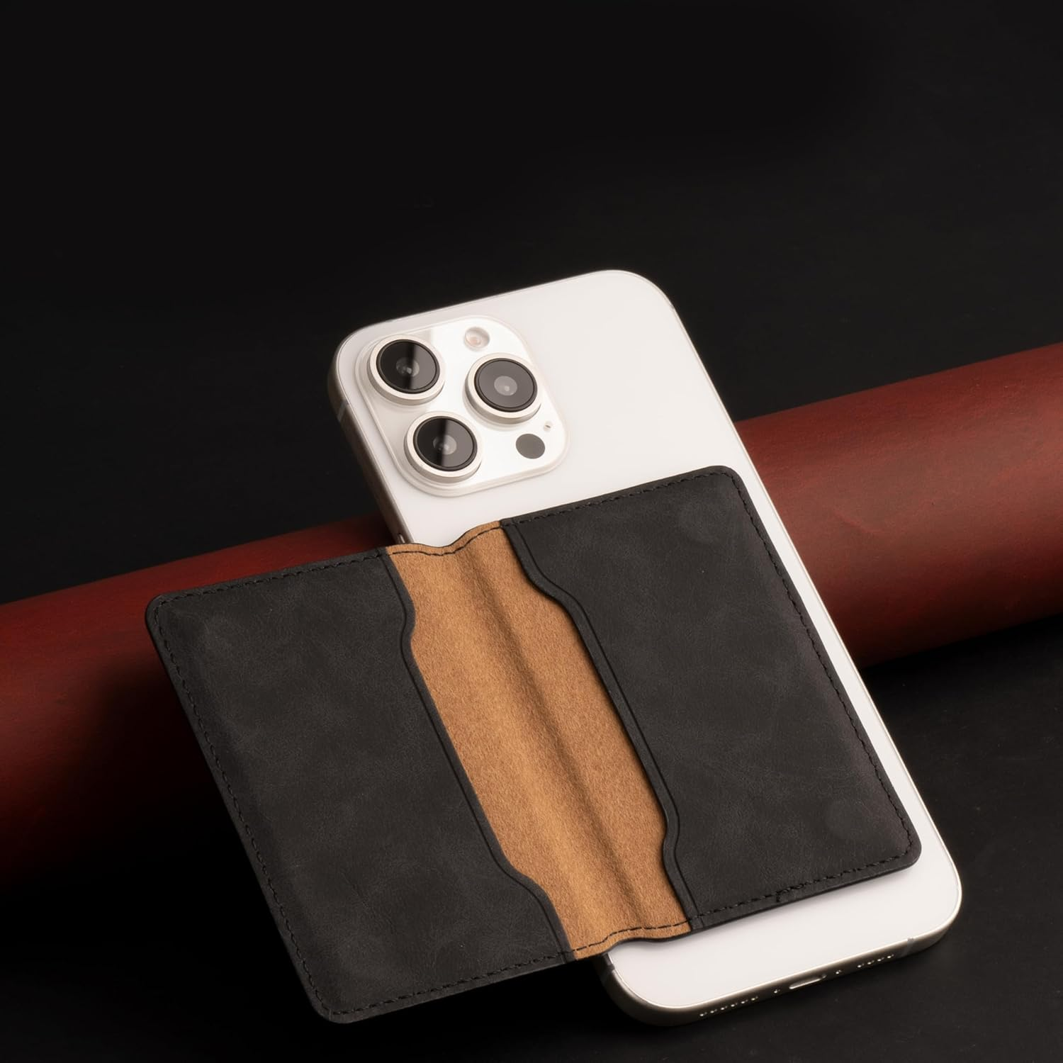 Denior PU Faux Leather Retro Pattern N52 Magnetic Card Holder | PU | Holds 4 Cards - Black
