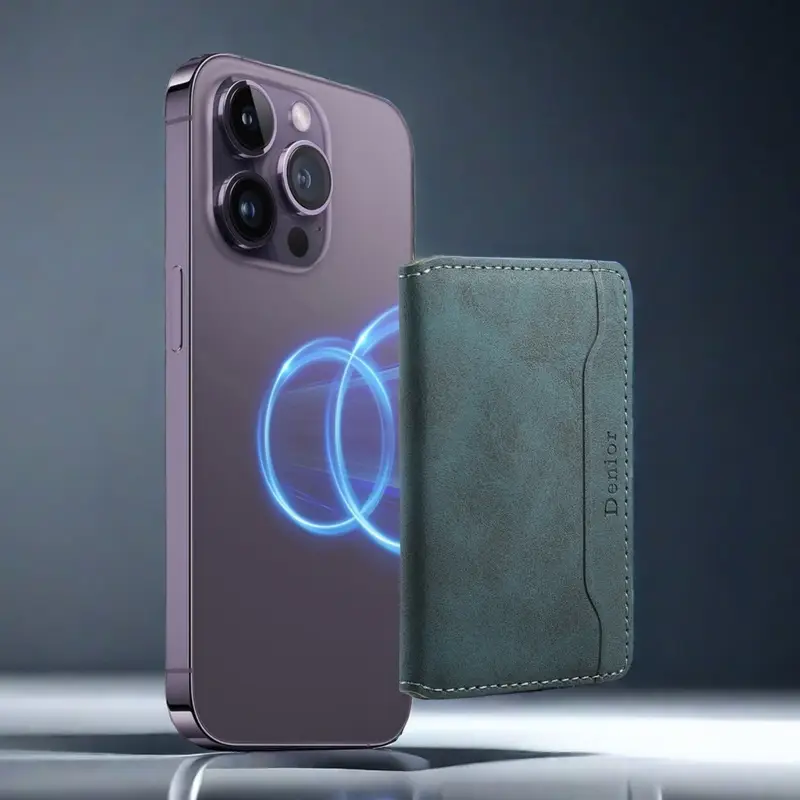 Denior PU Faux Leather Retro Pattern N52 Magnetic Card Holder | PU | Holds 4 Cards - Blue