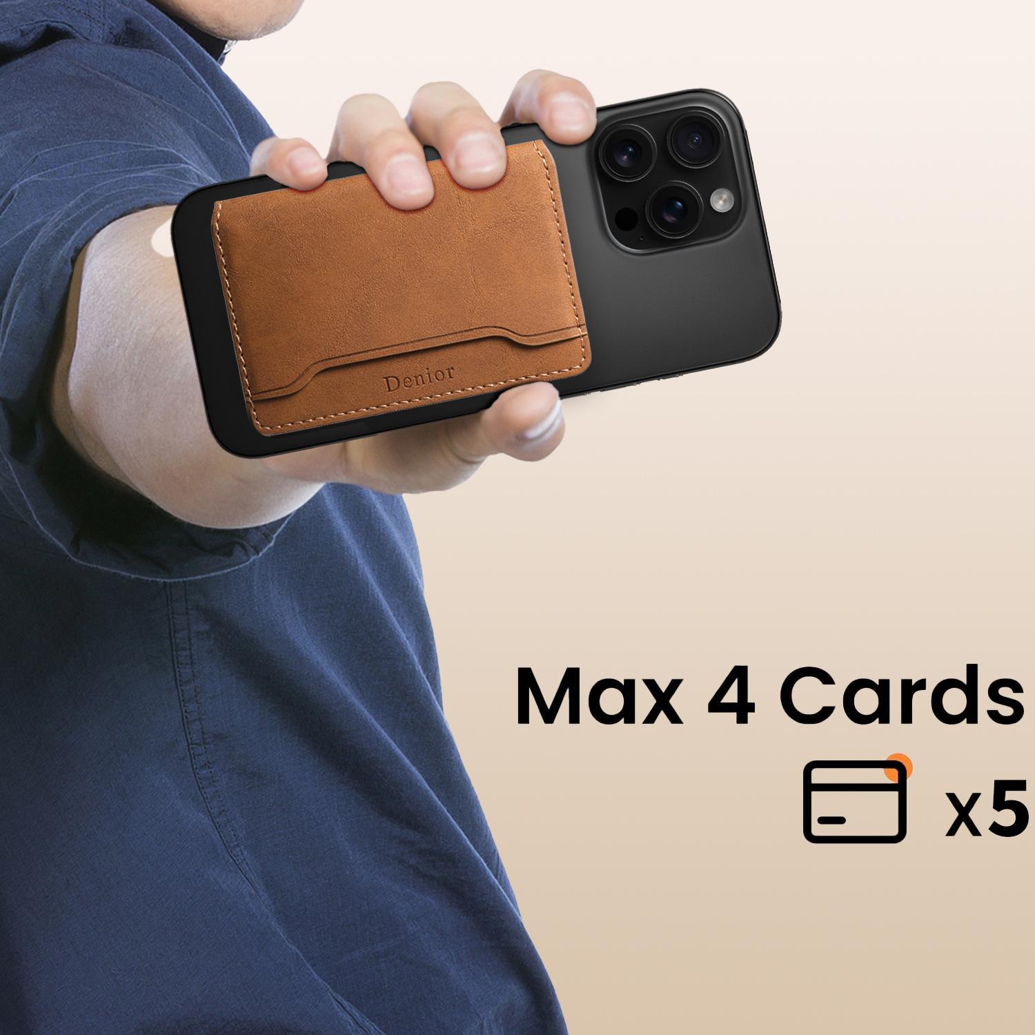 Denior PU Faux Leather Retro Pattern N52 Magnetic Card Holder | PU | Holds 4 Cards - Brown