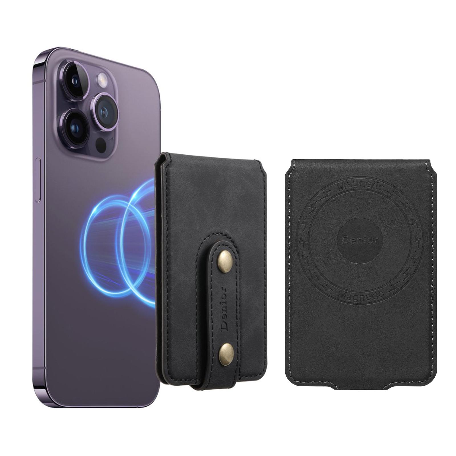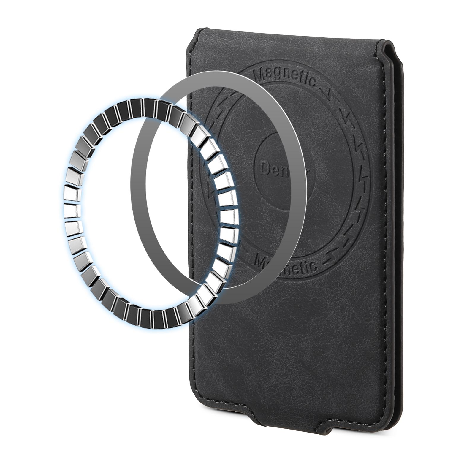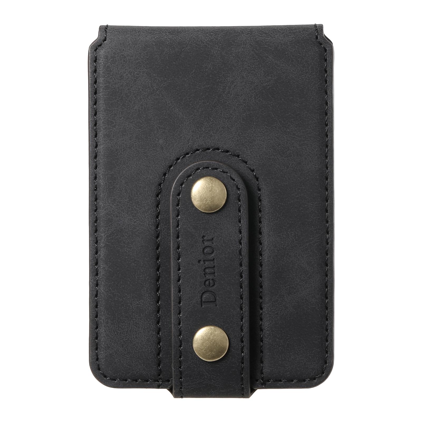 Denior PU Faux Leather Retro Pattern N52 Magnetic Top-Bottom Opening Button Card Holder | PU | Holds 3 Cards - Black