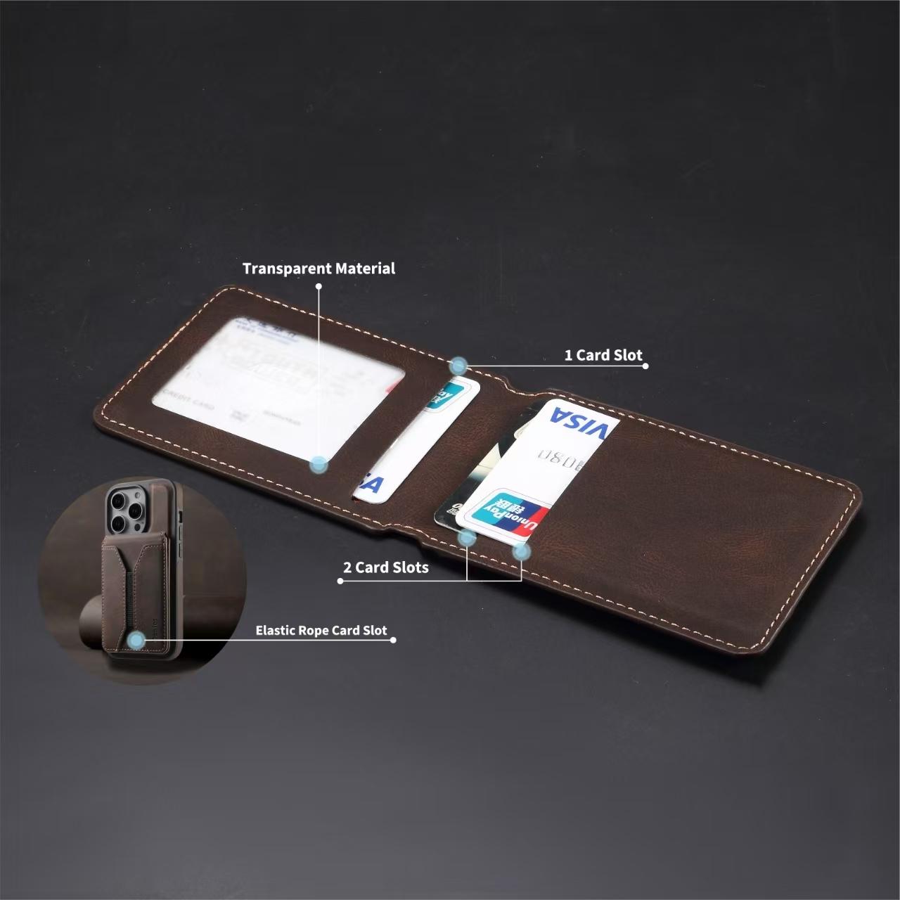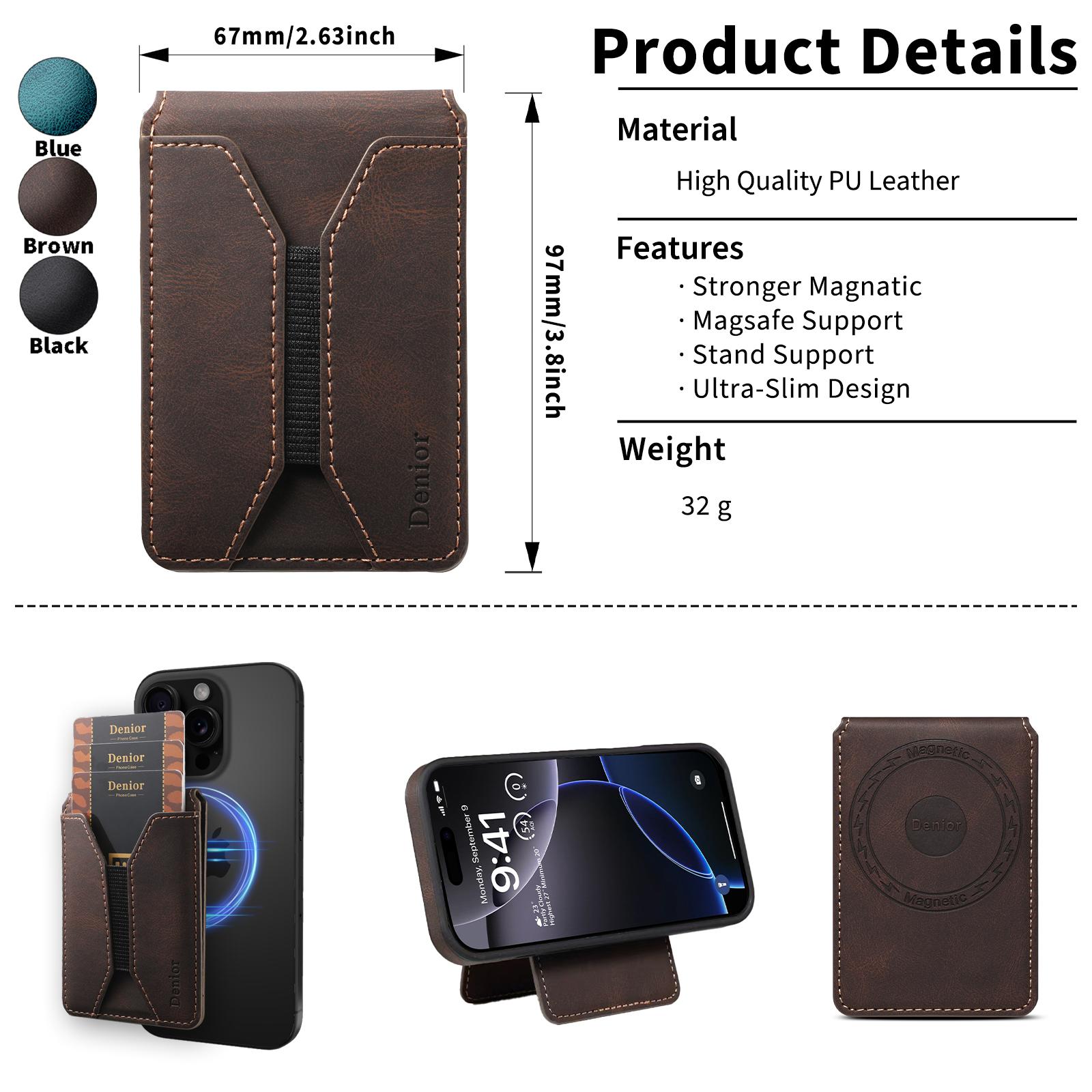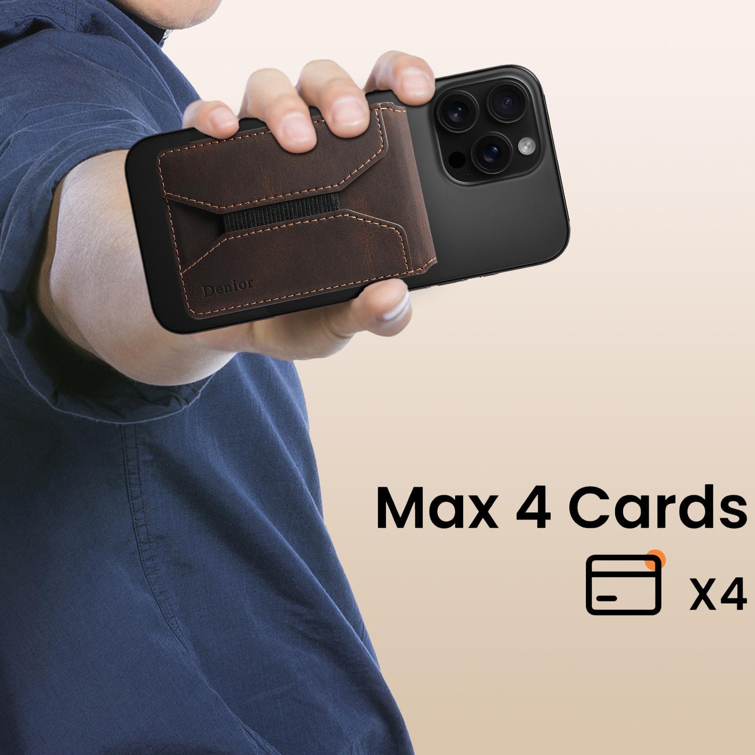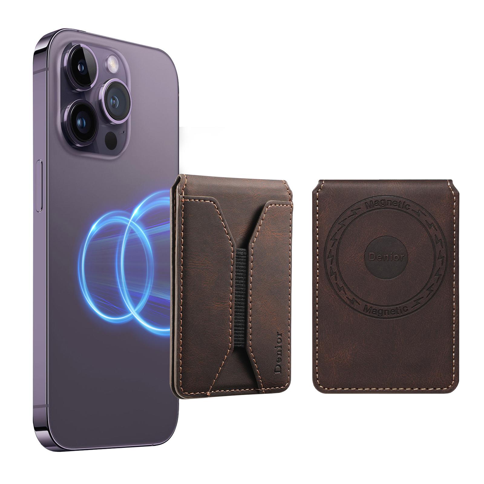 Denior PU Skin-Feel Material N52 Magnetic Elastic Top-Bottom Opening Card Holder | PU | Holds 4 Cards - Brown