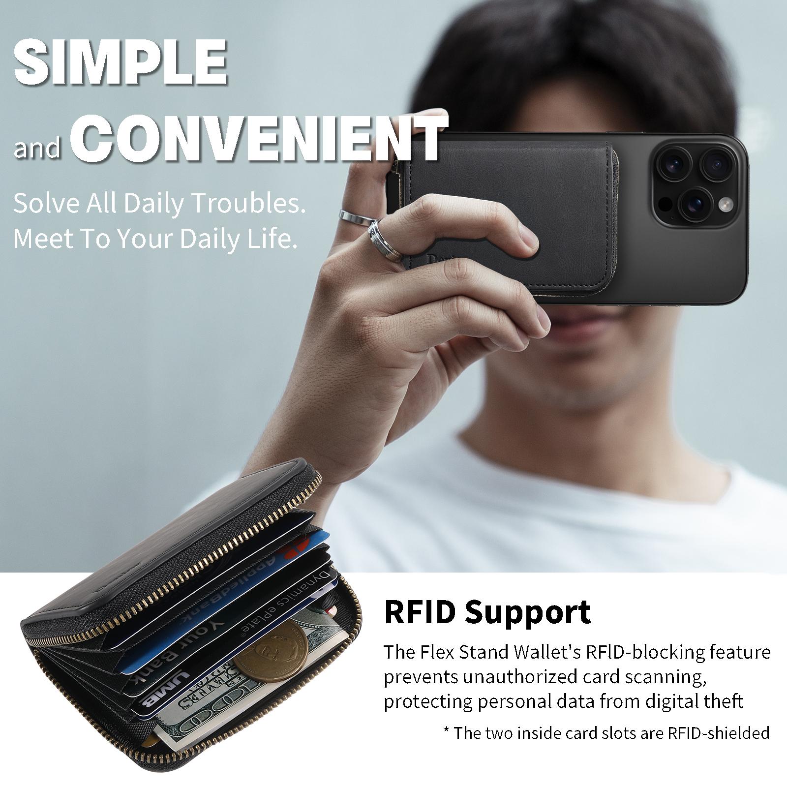 PU Skin-Feel Material N52 Magnetic RFID Blocking Zipper Card Holder, Black