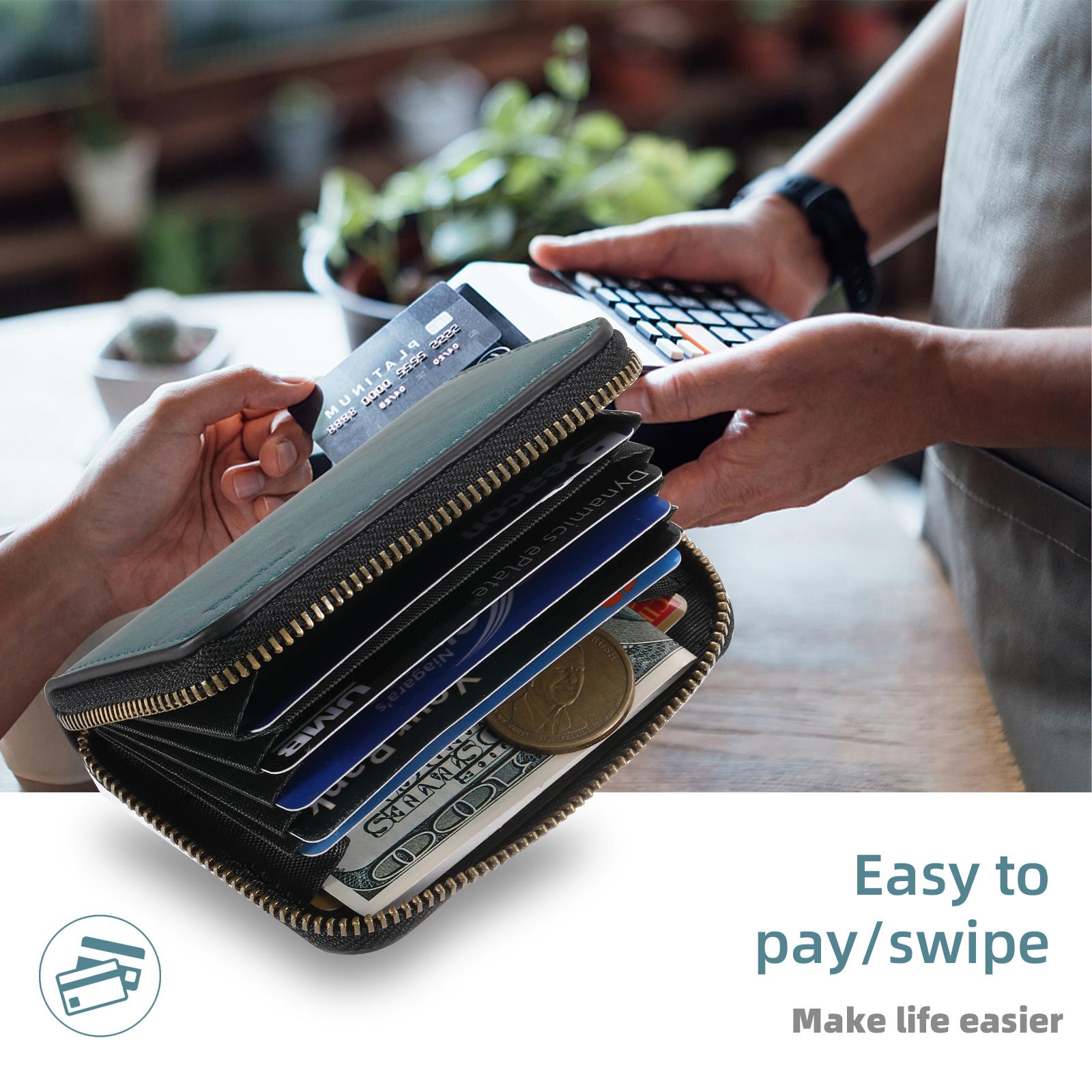 Denior PU Skin-Feel Material N52 Magnetic RFID Blocking Zipper Card Holder | PU | Holds 5 Cards - Blue