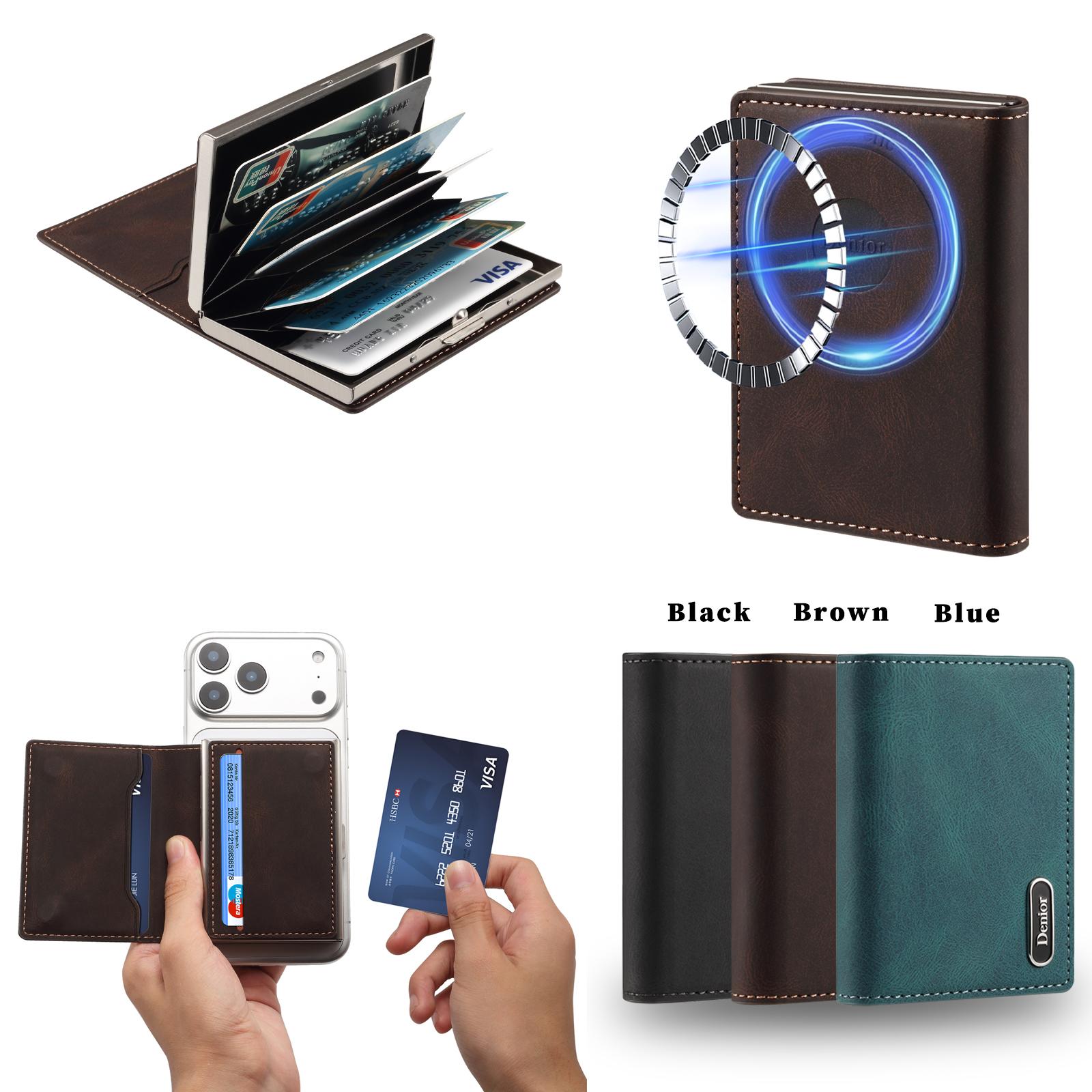 Denior PU Skin-Feel Faux Leather N52 Magnetic RFID Blocking Large-Capacity Wallet Card Holder | PU | Holds 9 Cards - Black
