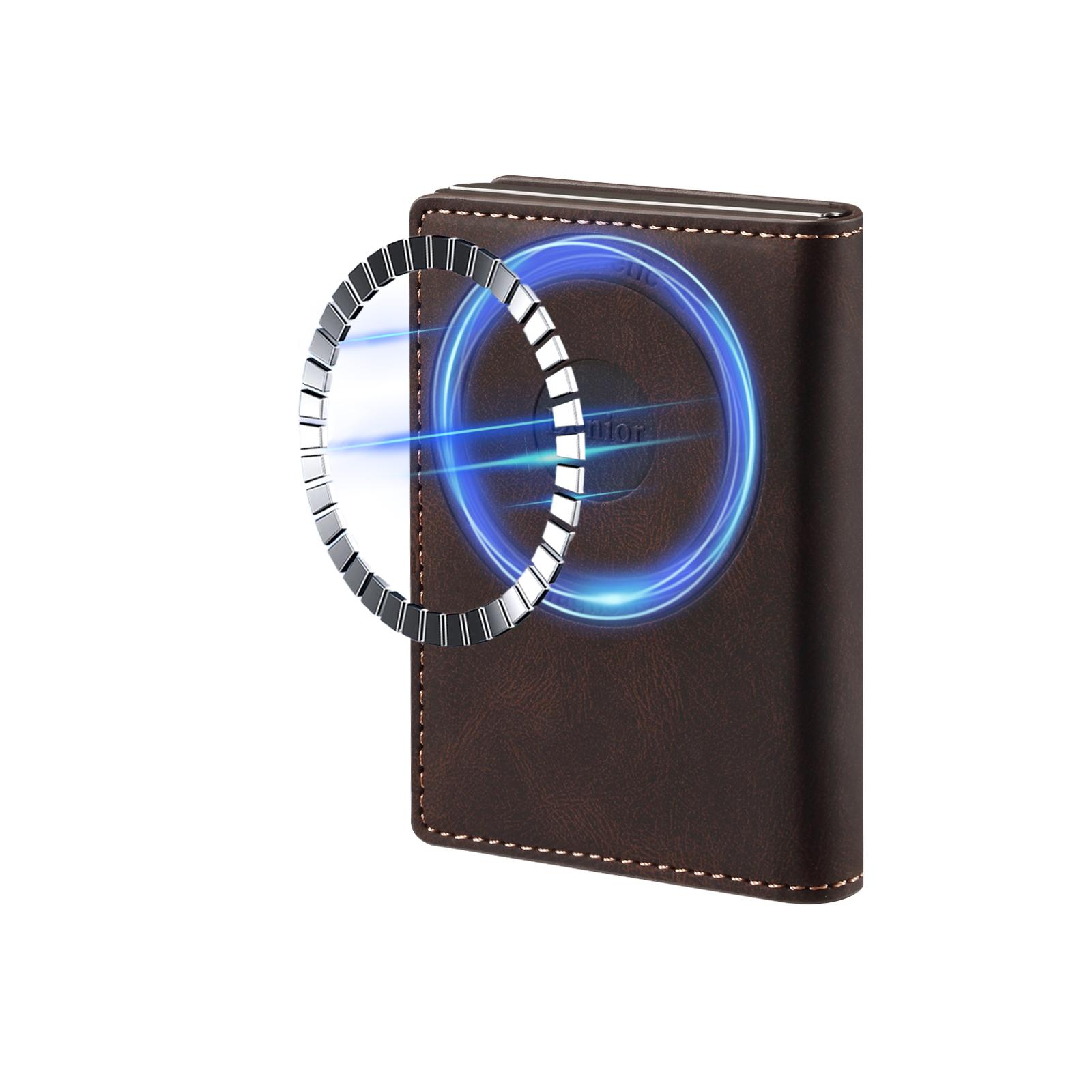 PU Skin-Feel N52 Magnetic RFID Blocking Large-Capacity Wallet Card Holder, Brown