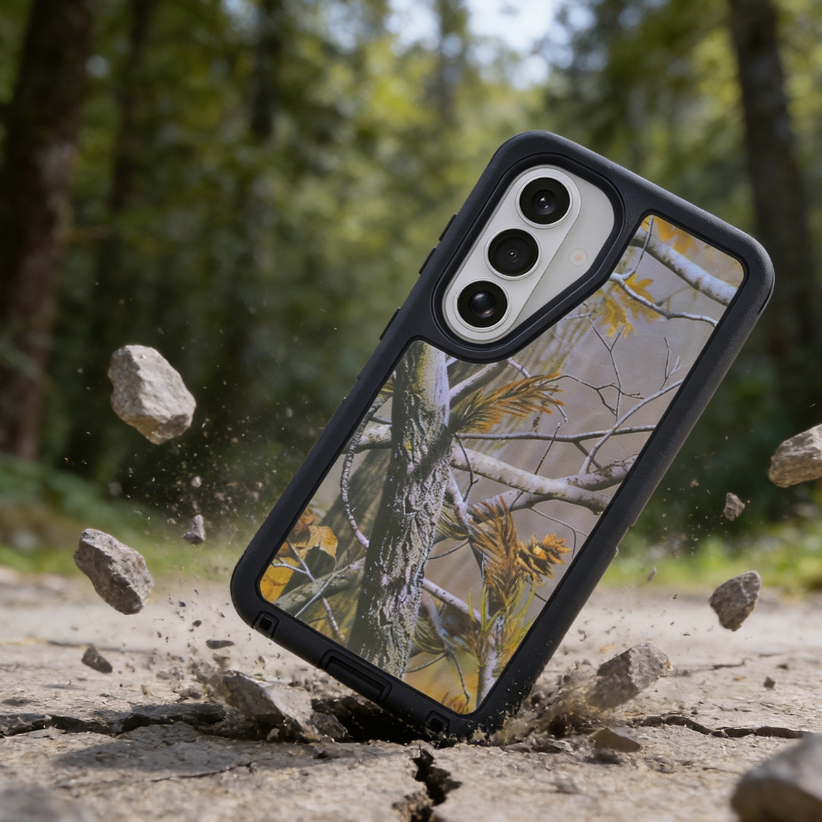 Real Tree Camo Phone Case for S26 Plus - Shockproof and Scratch-Resistant Protective Cover, Black
