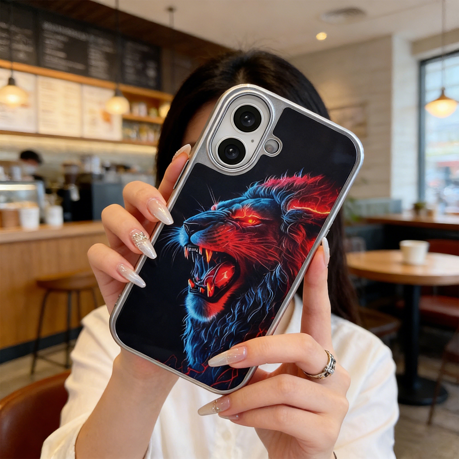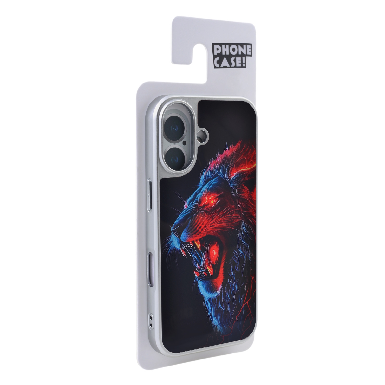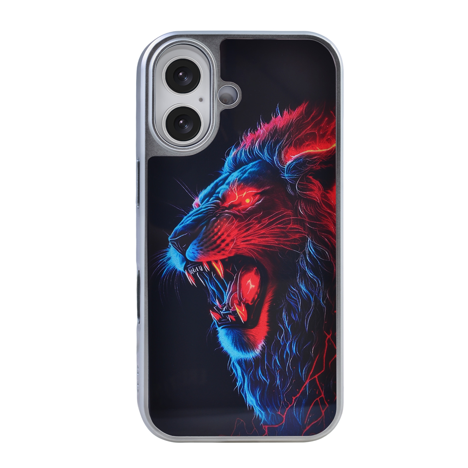 Red & Blue Glow Electric Lion Art Case for iPhone 17, Blue
