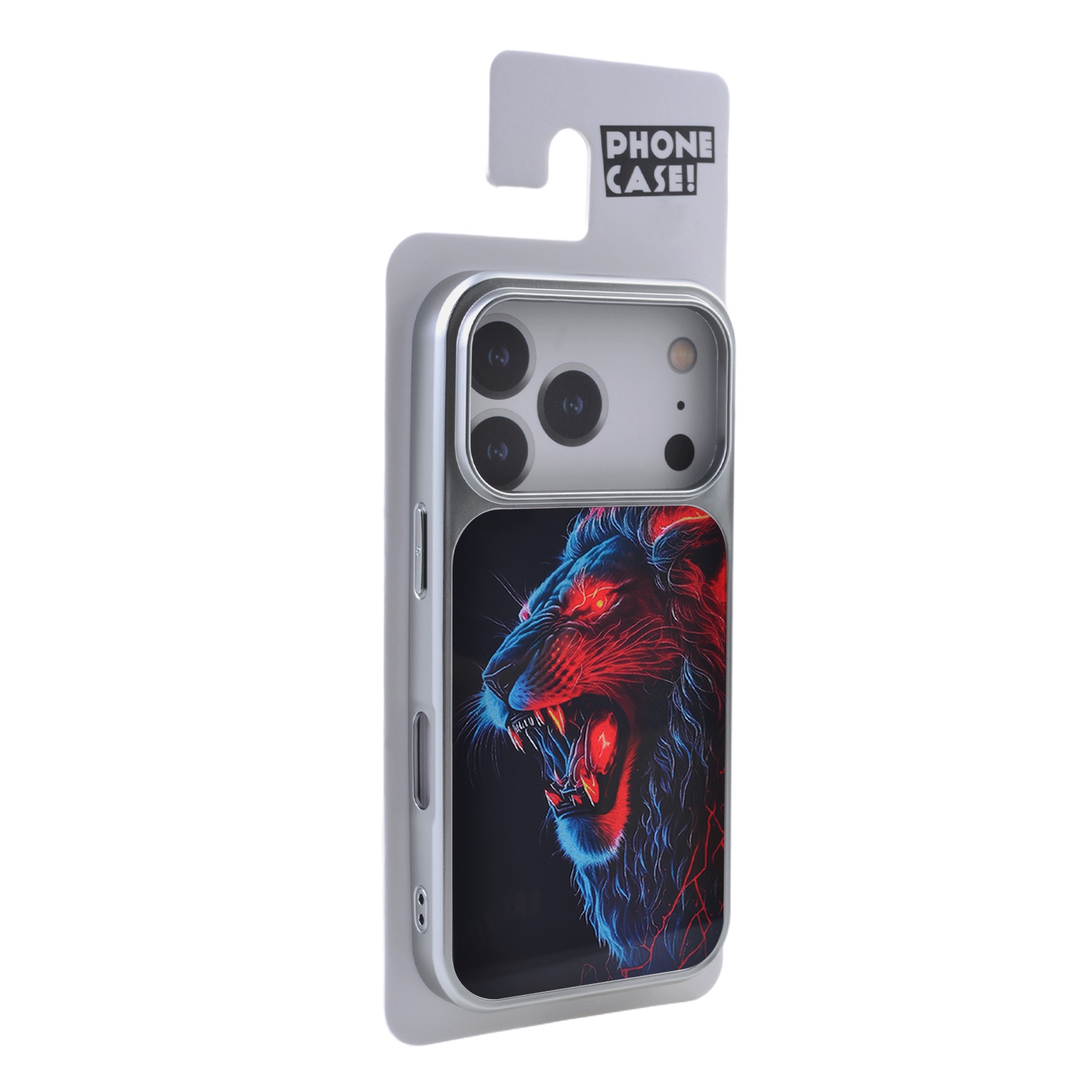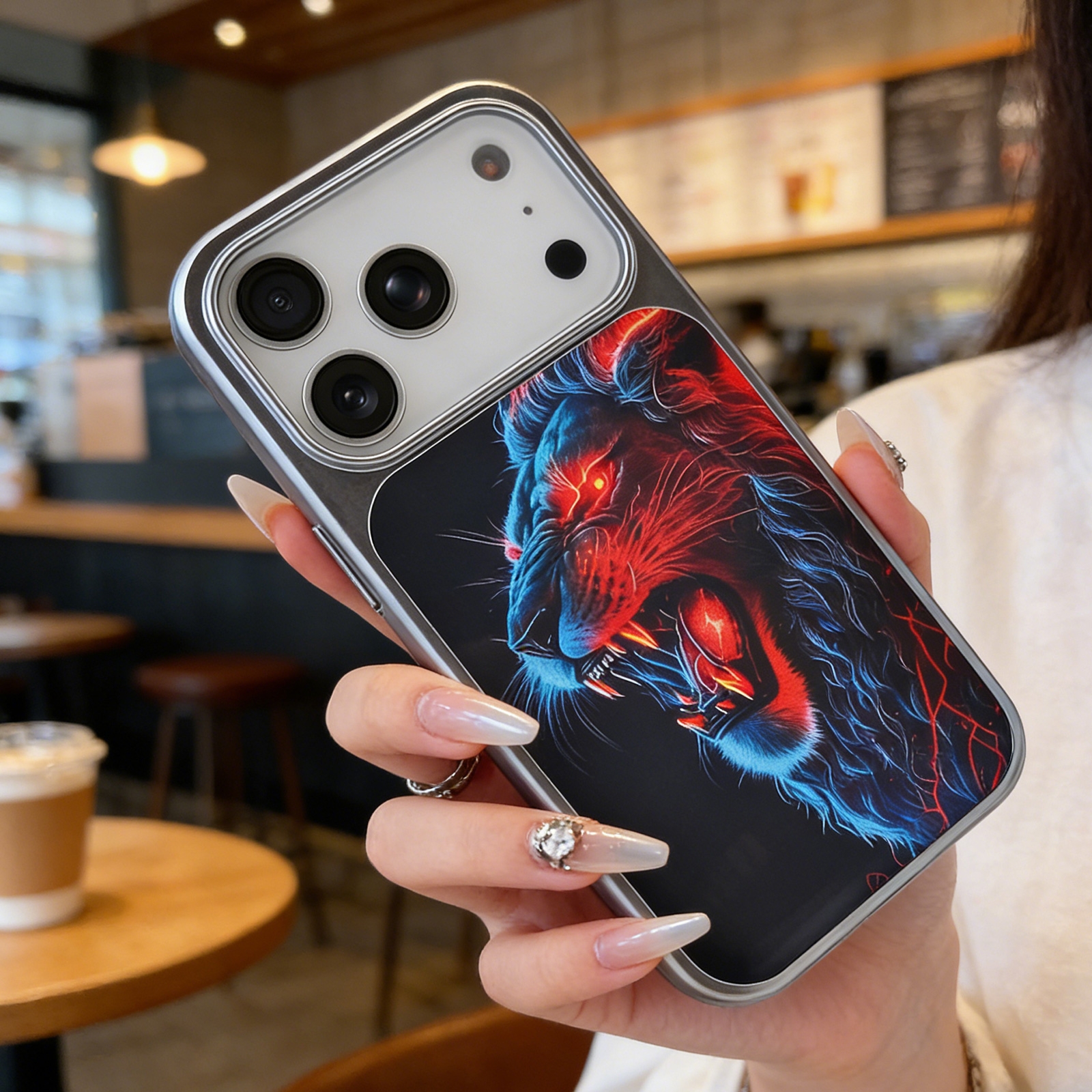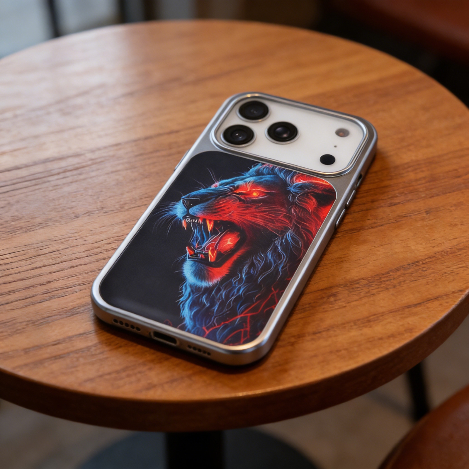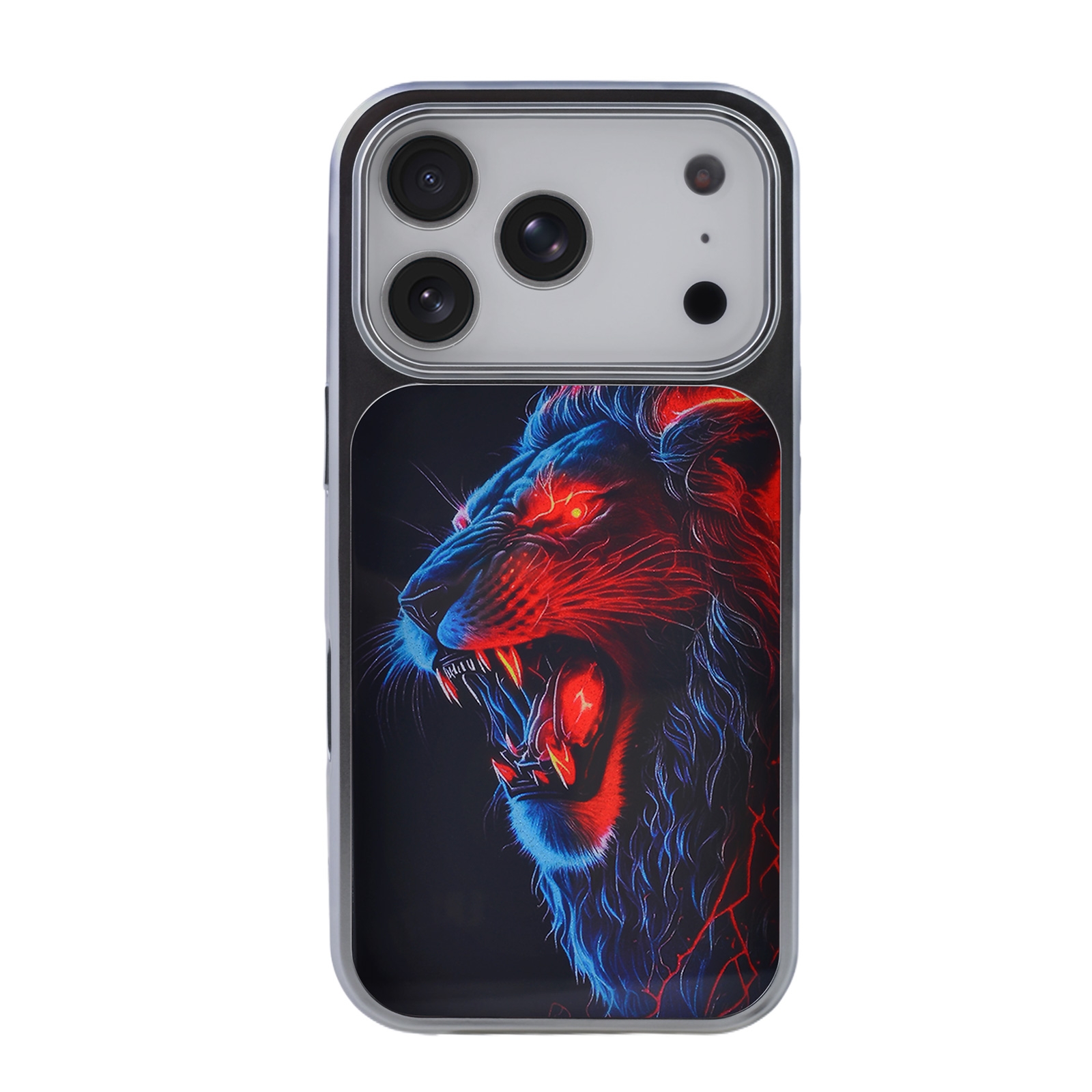 Red & Blue Glow Electric Lion Art Case for iPhone 17 Pro Max, Blue