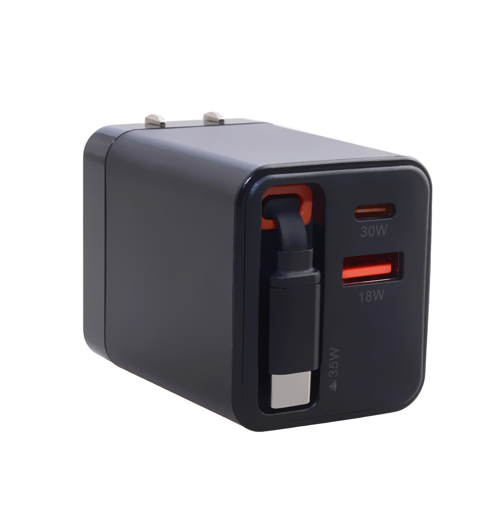 35W GaN Charger with Dual Retractable Cables - Yellow
