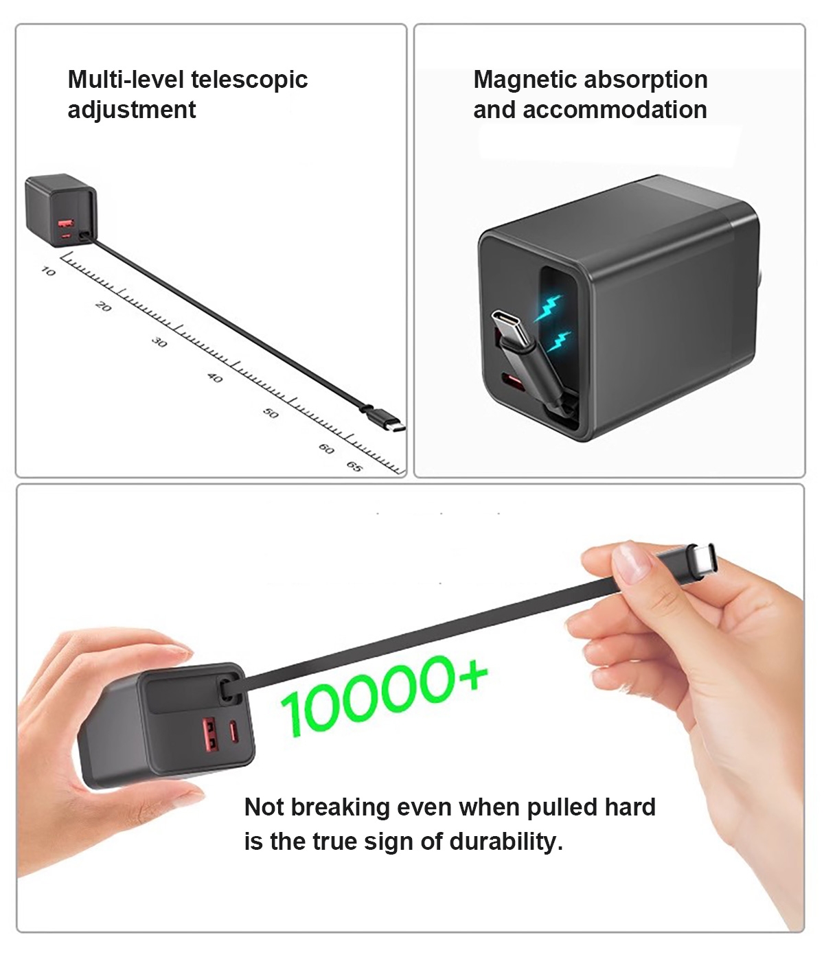 - Integrated Retractable Cable: 65cm built-in Type-C cable extends smoothly and retracts for tangle-free storage.
