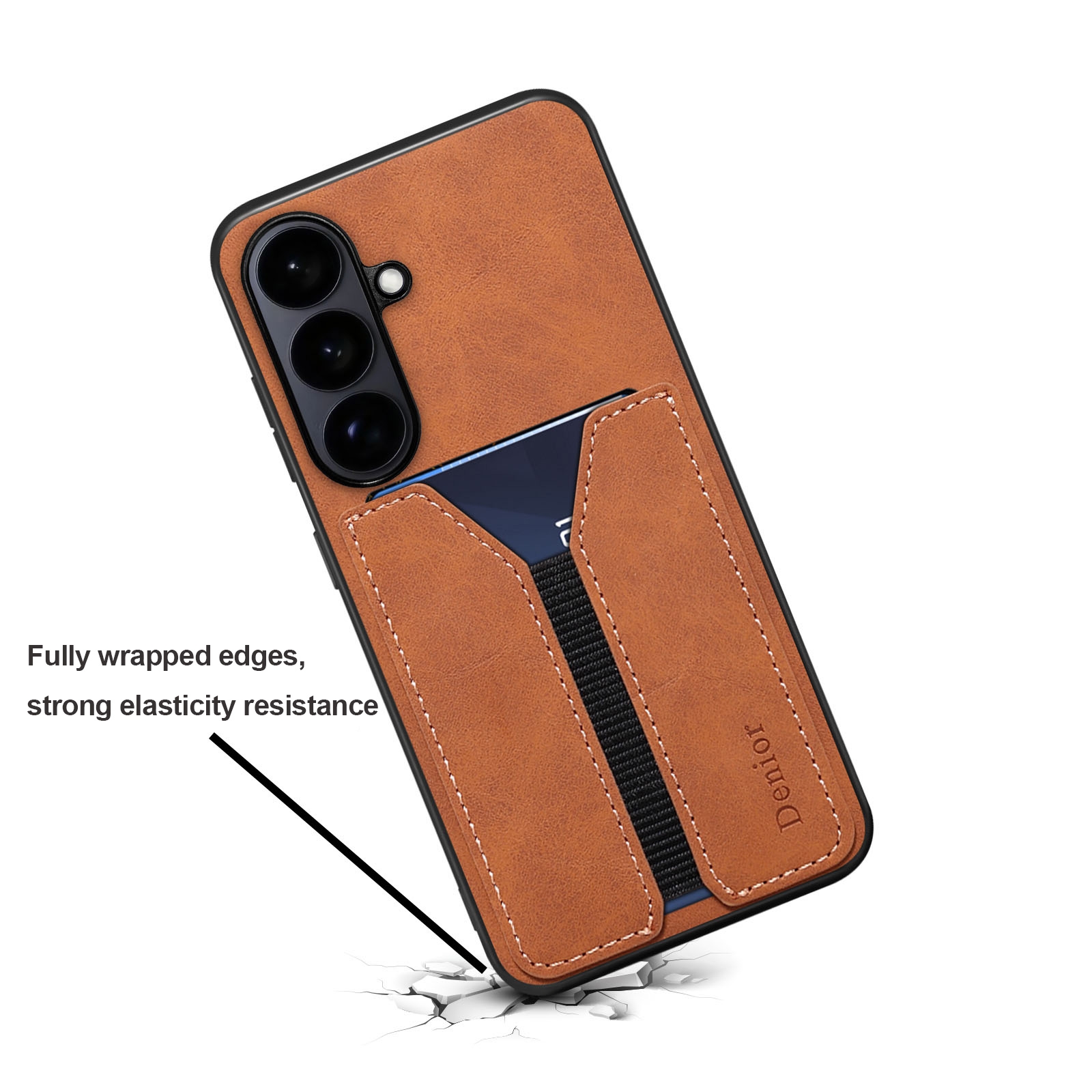 Retro Faux Leather Texture Case with Card Holder for S26, Brown