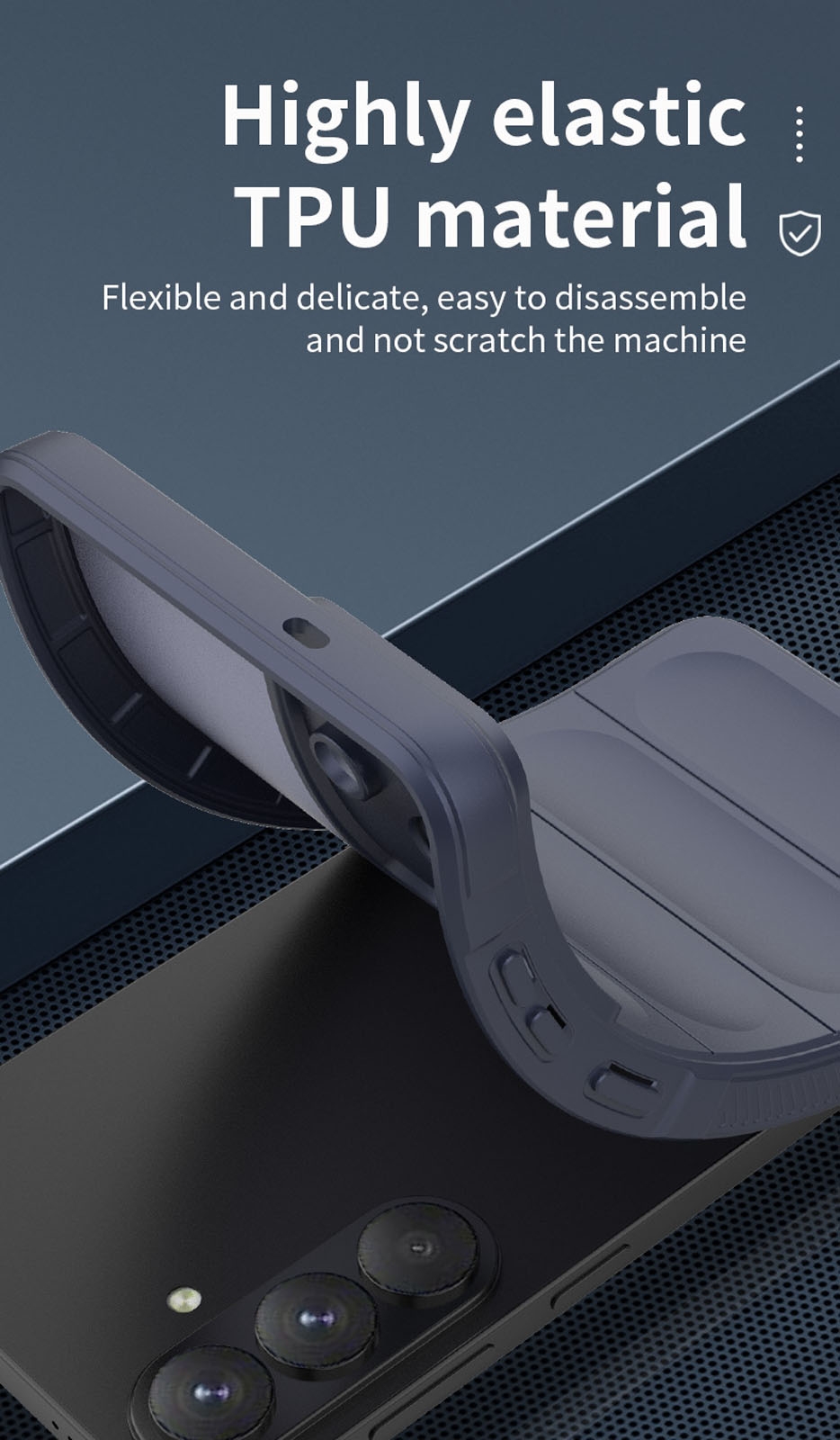 Magnetic Phone Case with 360° Rotating Stand for S26, Dark Blue