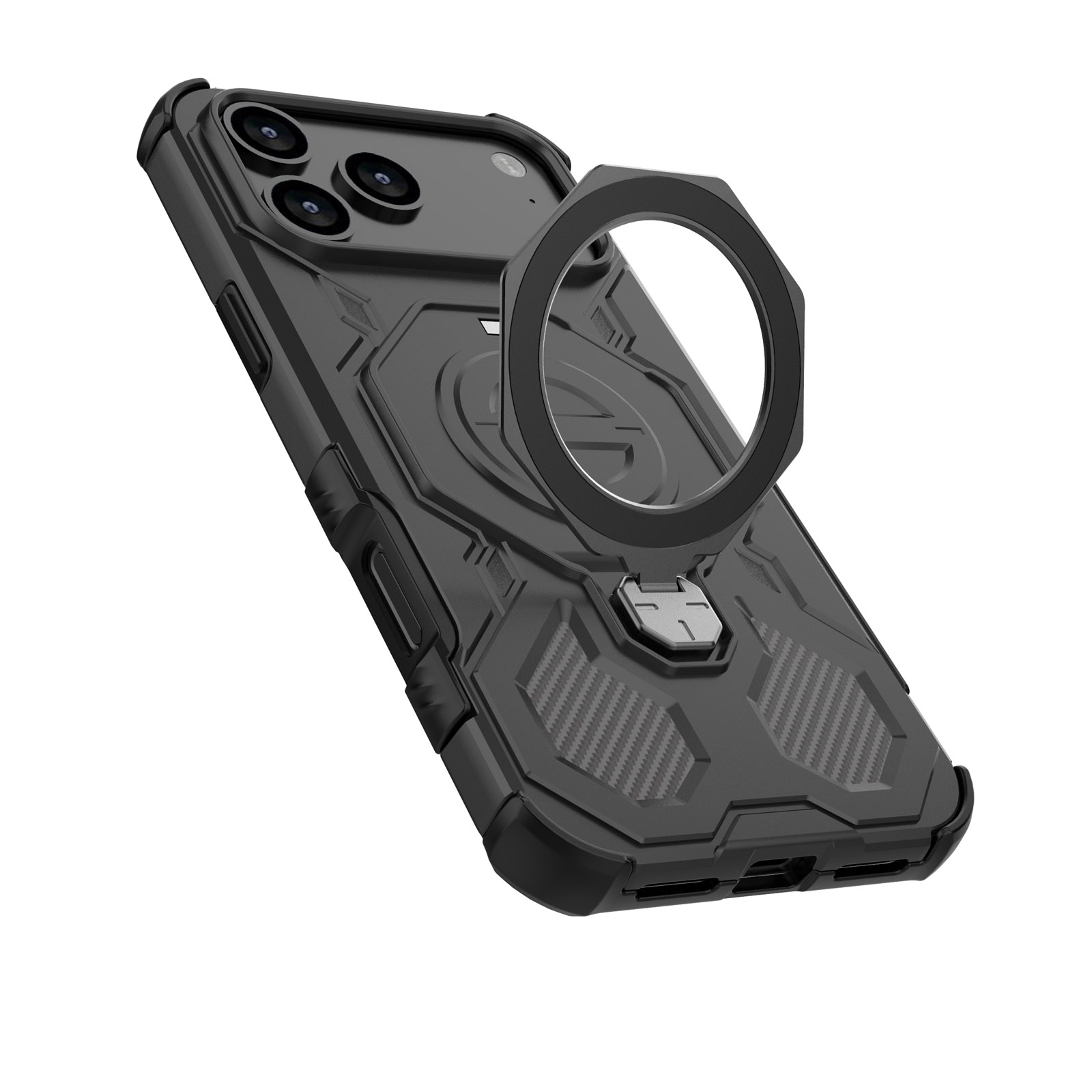 360 Rotation Kickstand Magnetic iPhone 17 Pro Case - Airbag Shockproof Metal Stand, Black