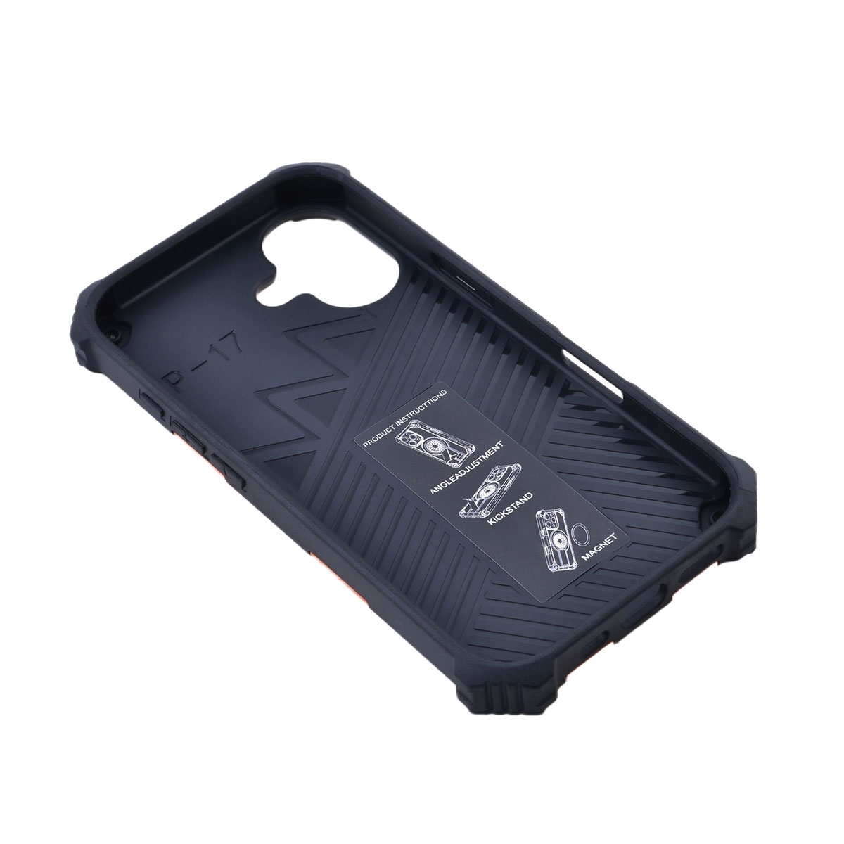 Rugged Magnetic Case with Foldable Kickstand & Wrist Strap for iPhone 17, Orange