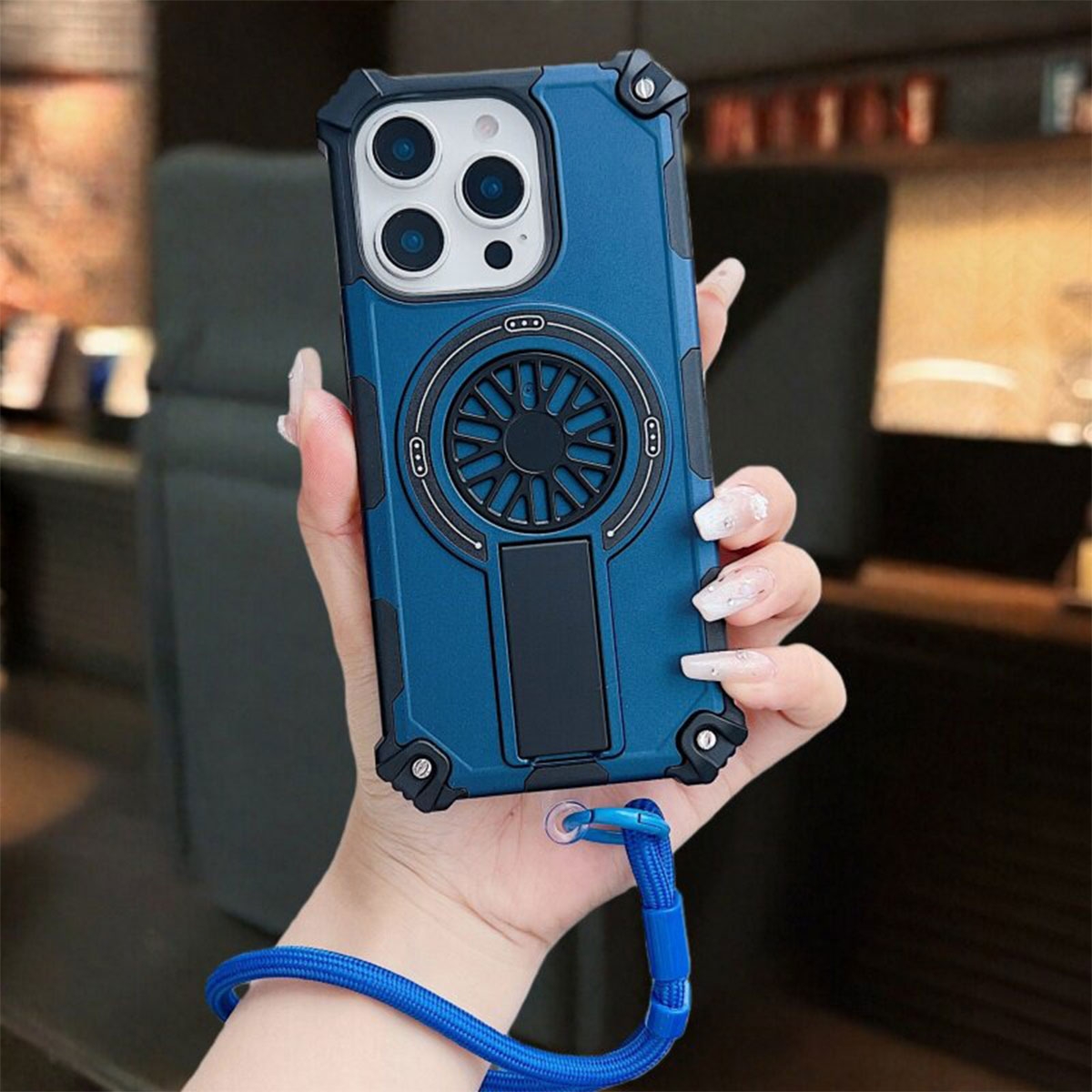 Rugged Magnetic Case with Foldable Kickstand & Wrist Strap for iPhone 17 Pro, Blue