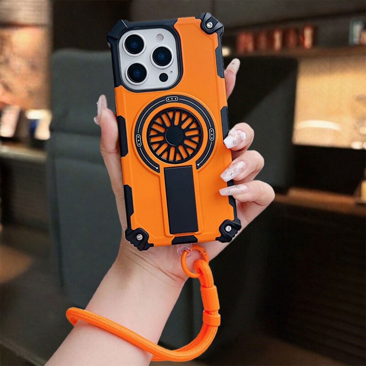 Rugged Magnetic Case with Foldable Kickstand & Wrist Strap for iPhone 17 Pro, Orange