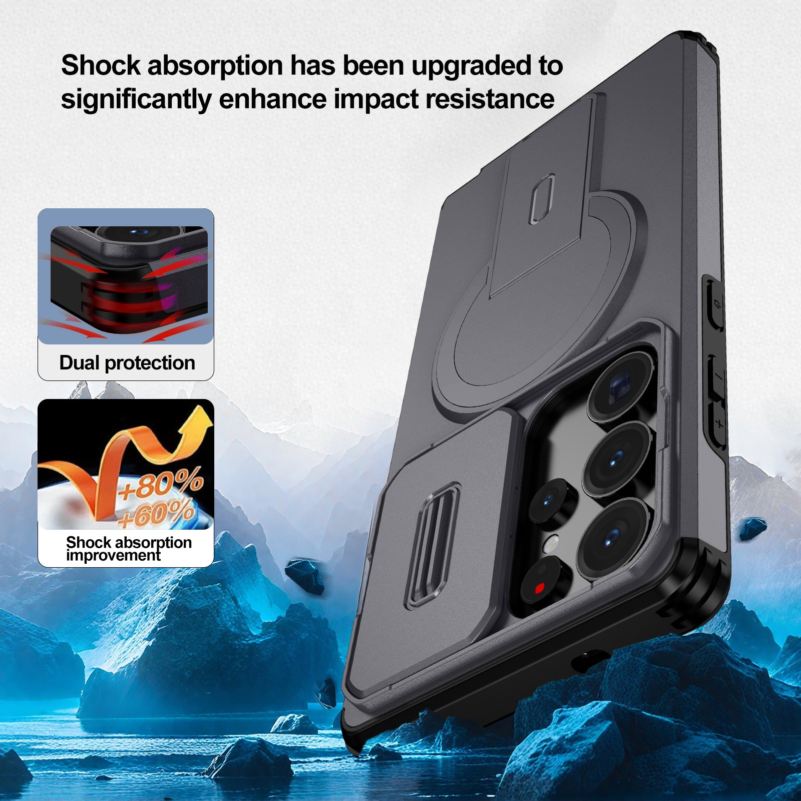 360 Rotation Kickstand Magnetic S26 Plus Case - Airbag Shockproof Metal Stand, Black