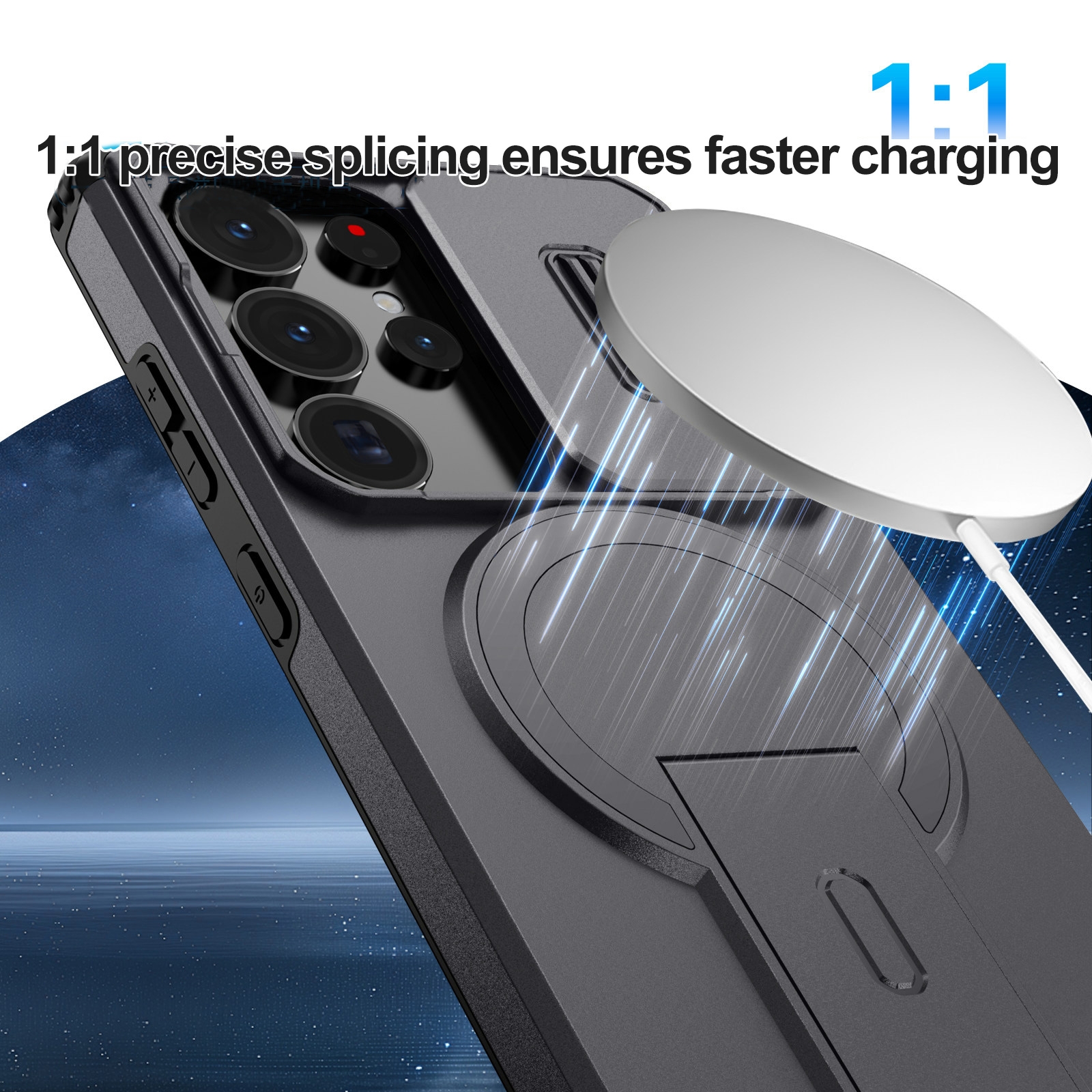 Magnetic Phone Case with 360° Rotating Stand for S26 Plus, Dark Blue