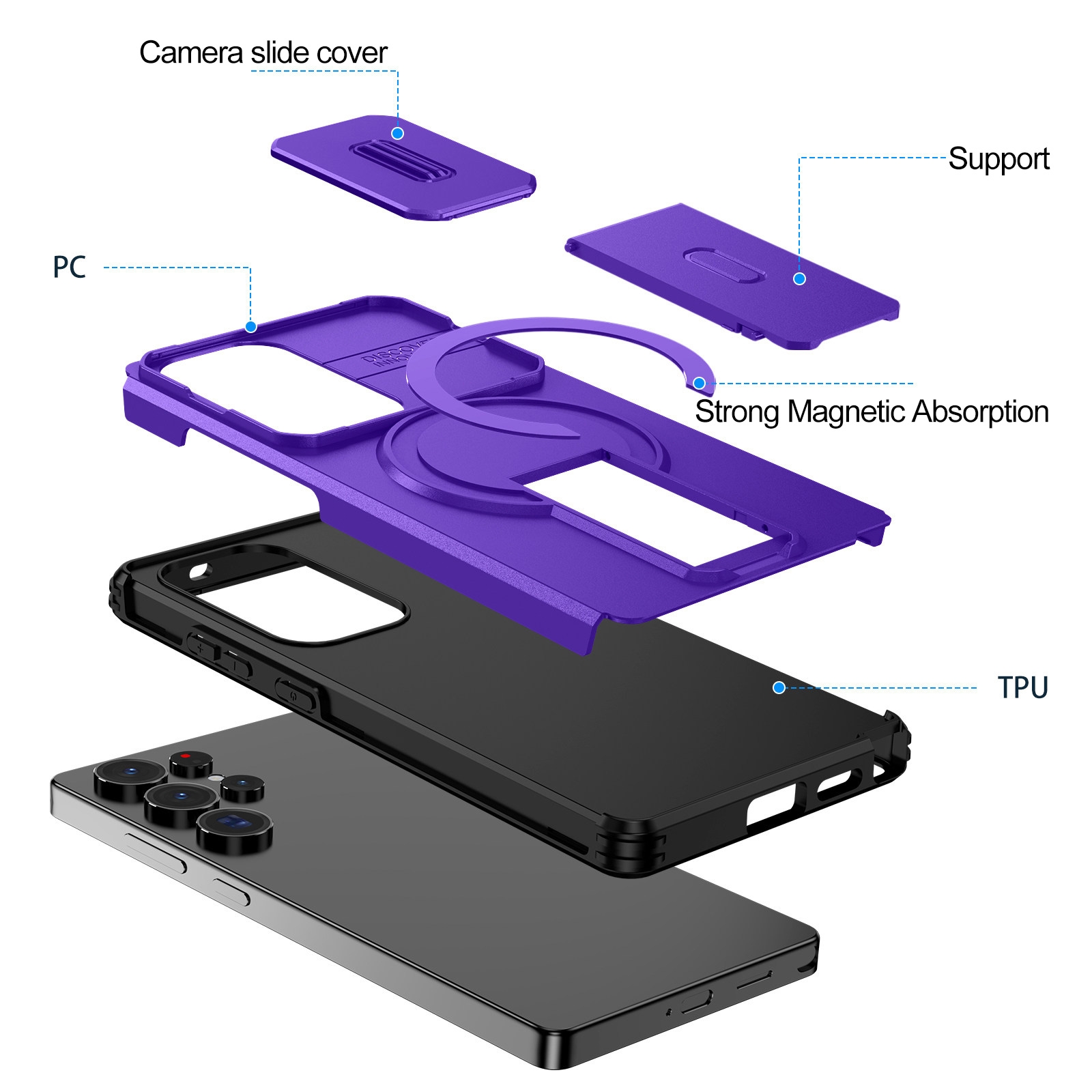 S26 Plus Hidden Kickstand Armor Design Protective Case, Purple