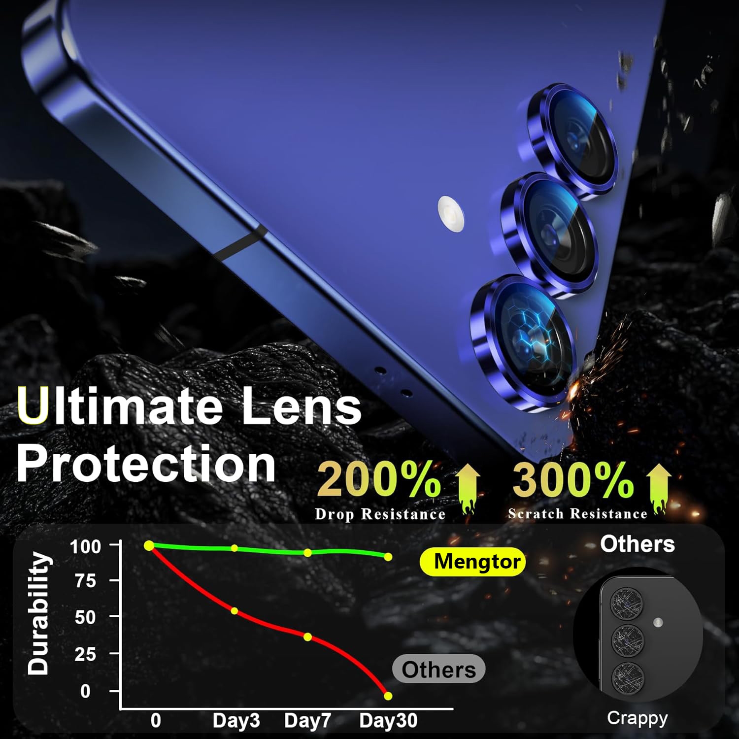 - High-Transparency Camera Protector: Enjoy crystal-clear photos and videos without any loss in sharpness or color accuracy.