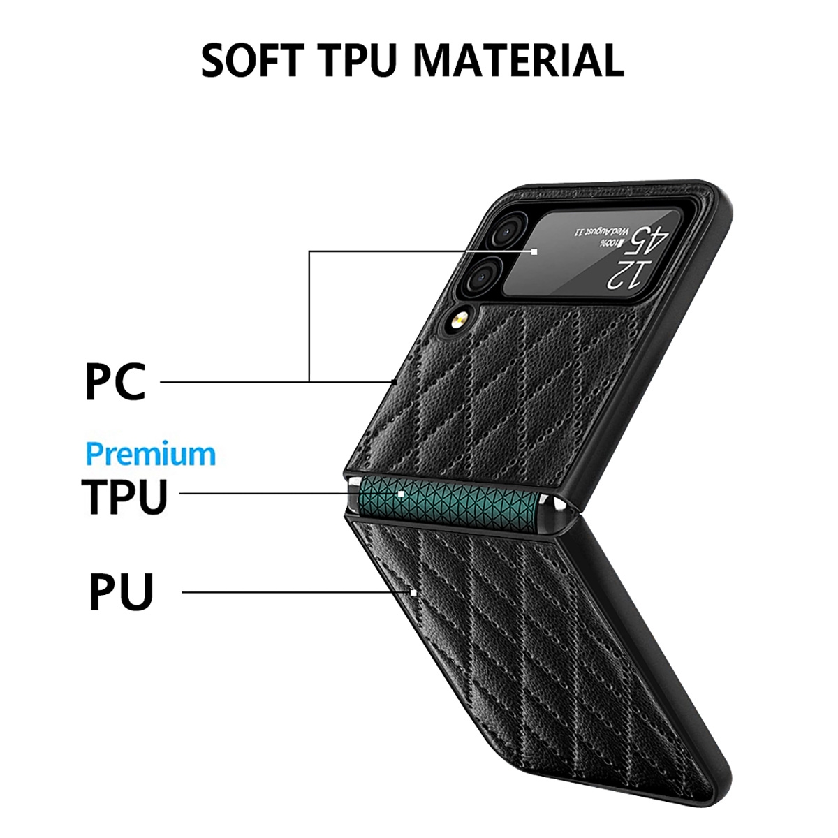 Rhomboid Leather Case with Camera Lens Protector for Samsung Galaxy Z Flip 4 5G - Green