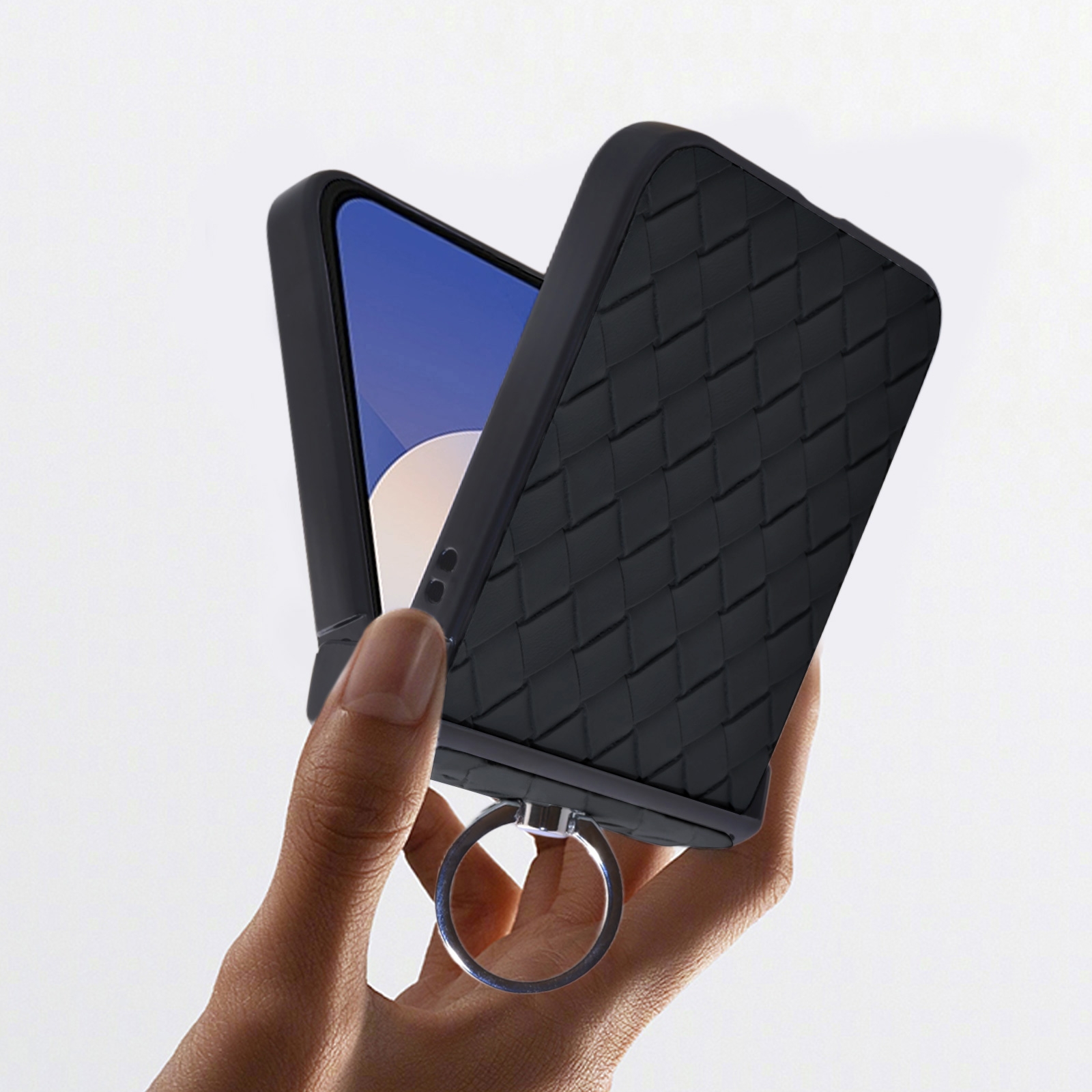 Samsung Z Flip 6 Case – Black Plaid Folding Phone Cover with Ring Holder