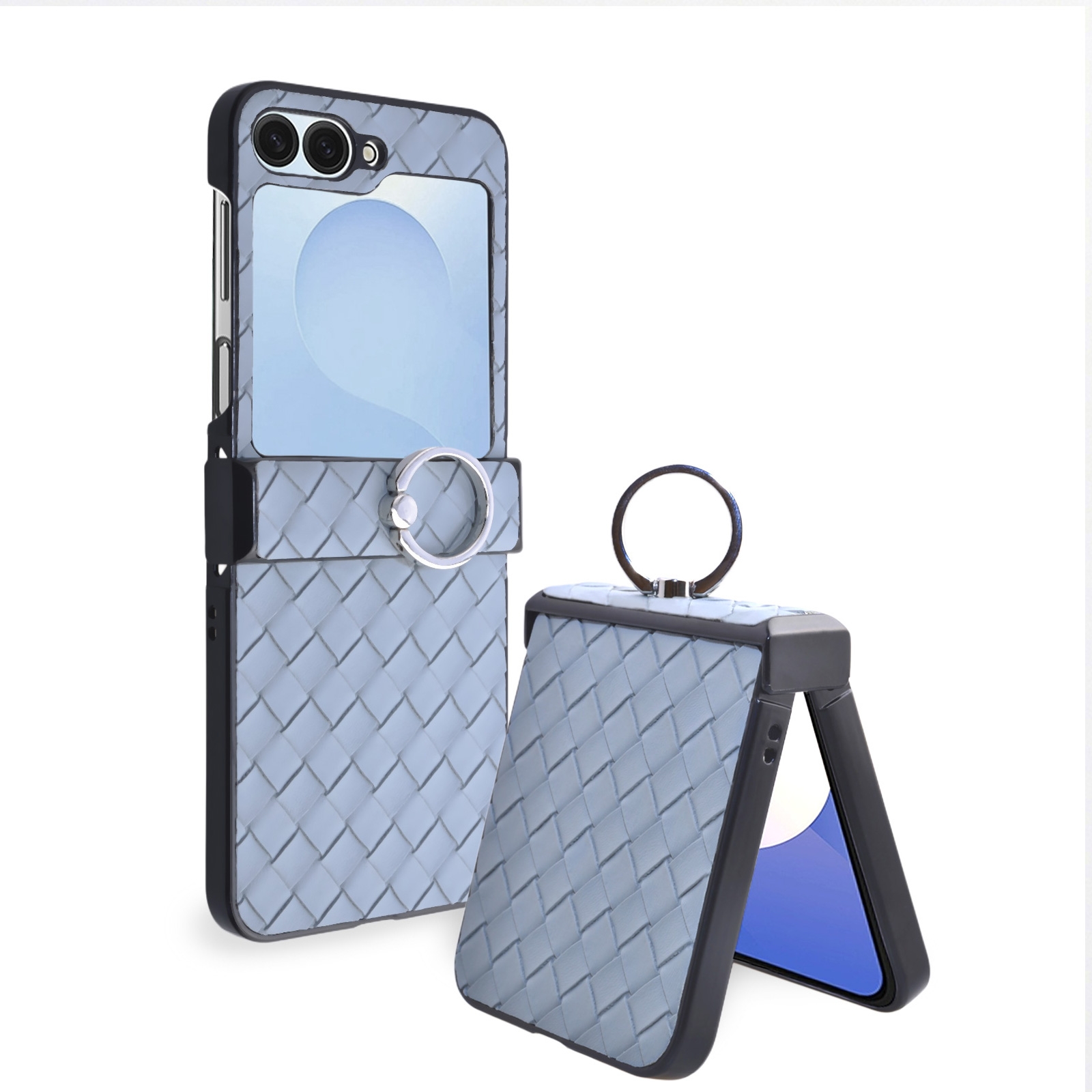 Samsung Z Flip 6 Case – Gray Plaid Folding Phone Cover with Ring Holder