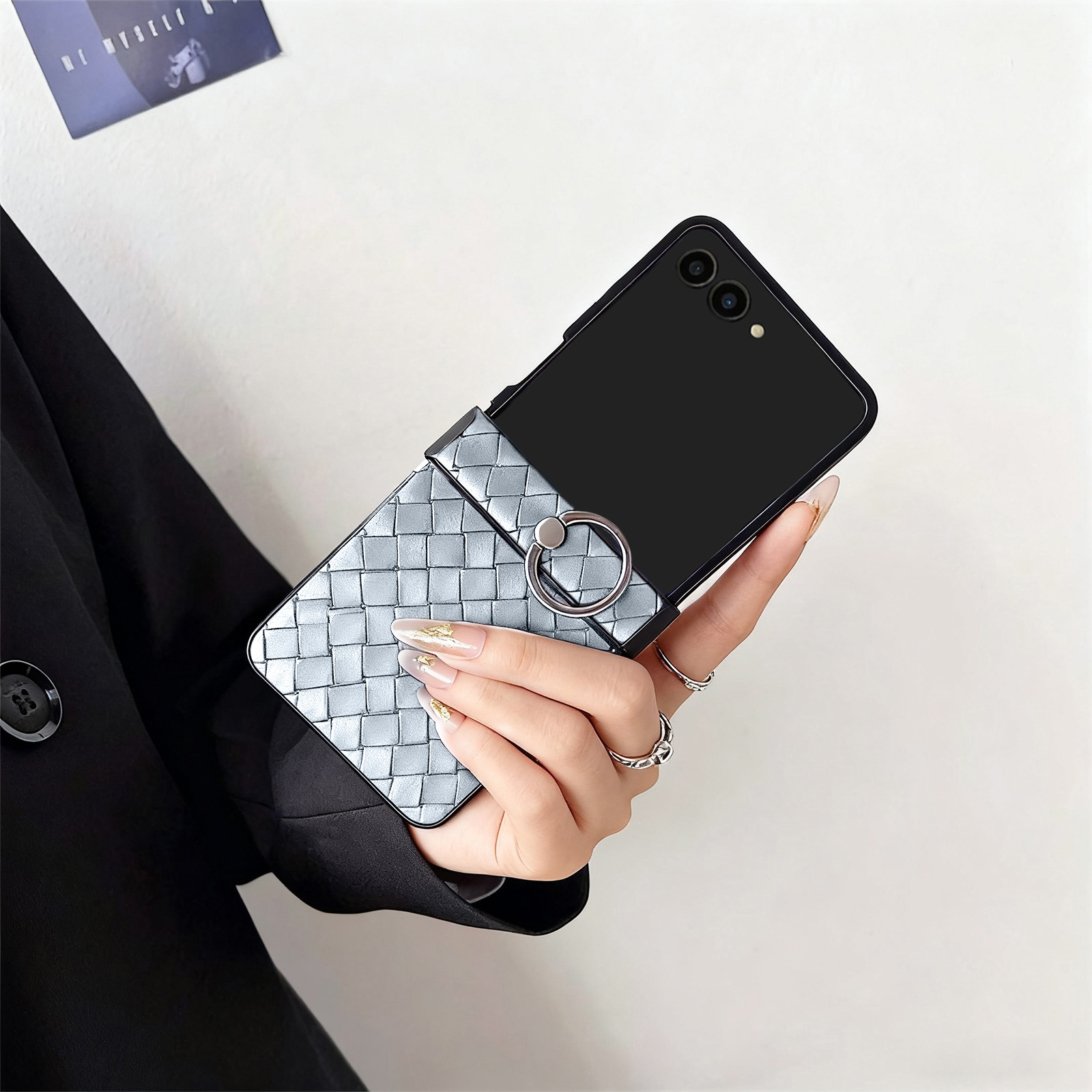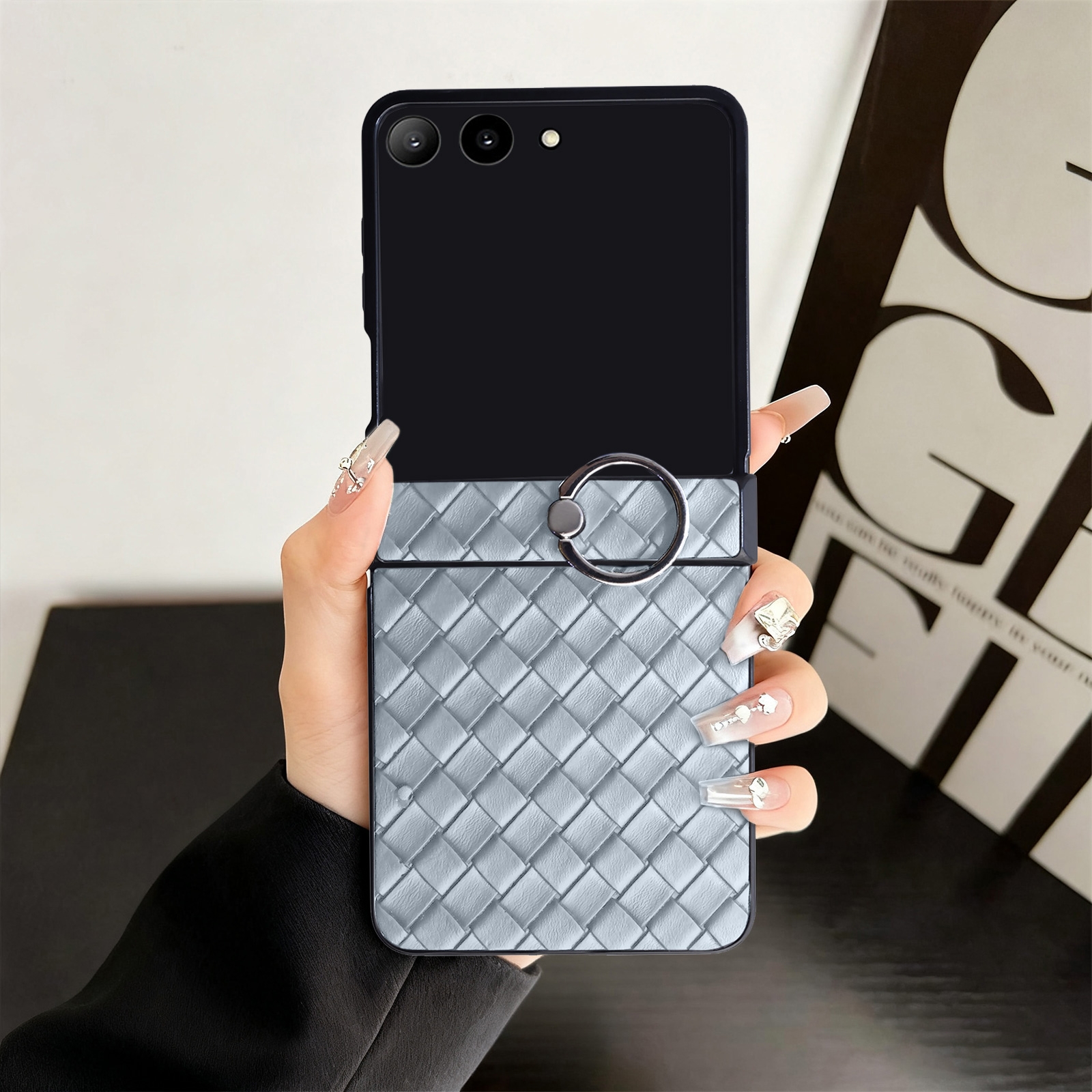 Samsung Z Flip 7 Case – Black Plaid Folding Phone Cover with Ring Holder