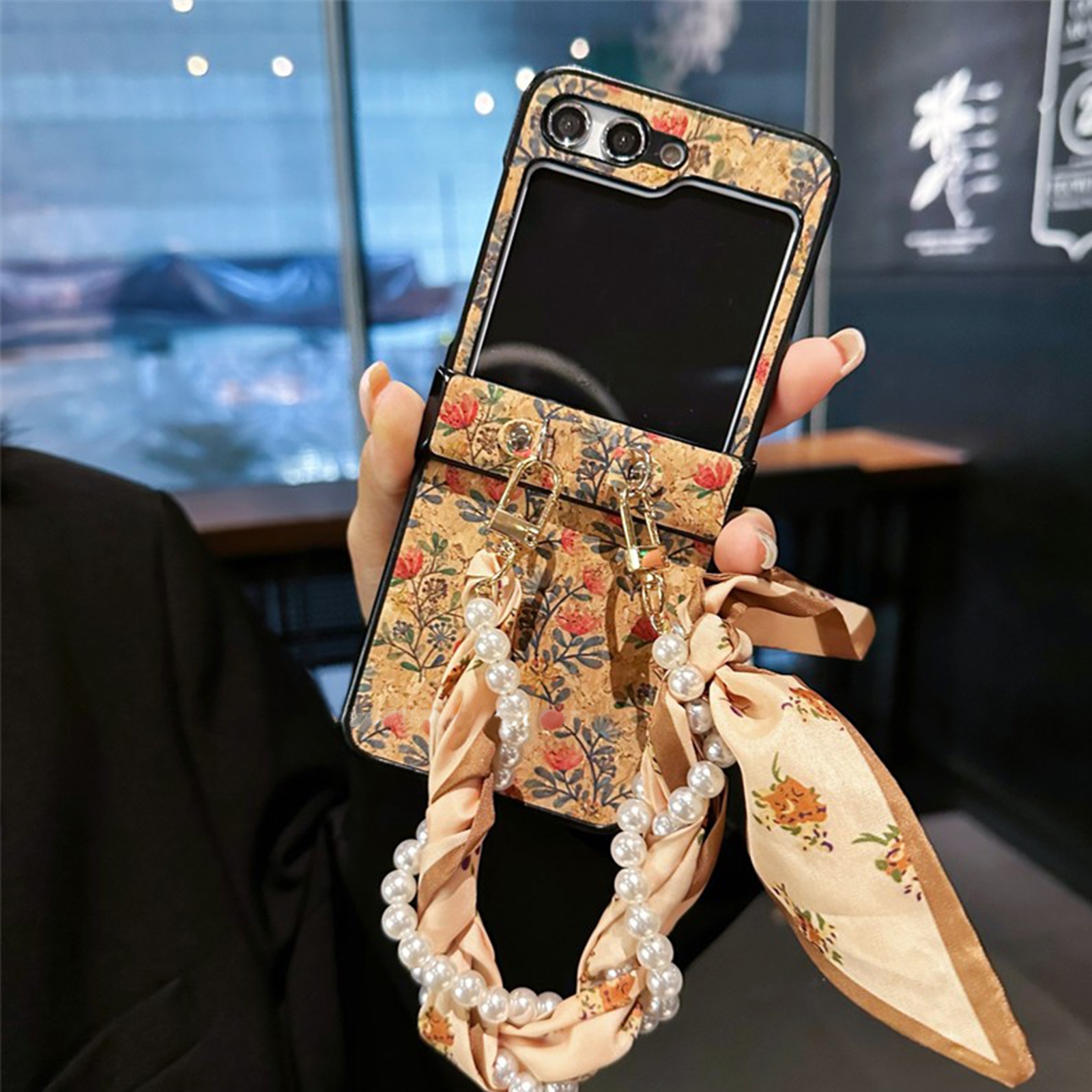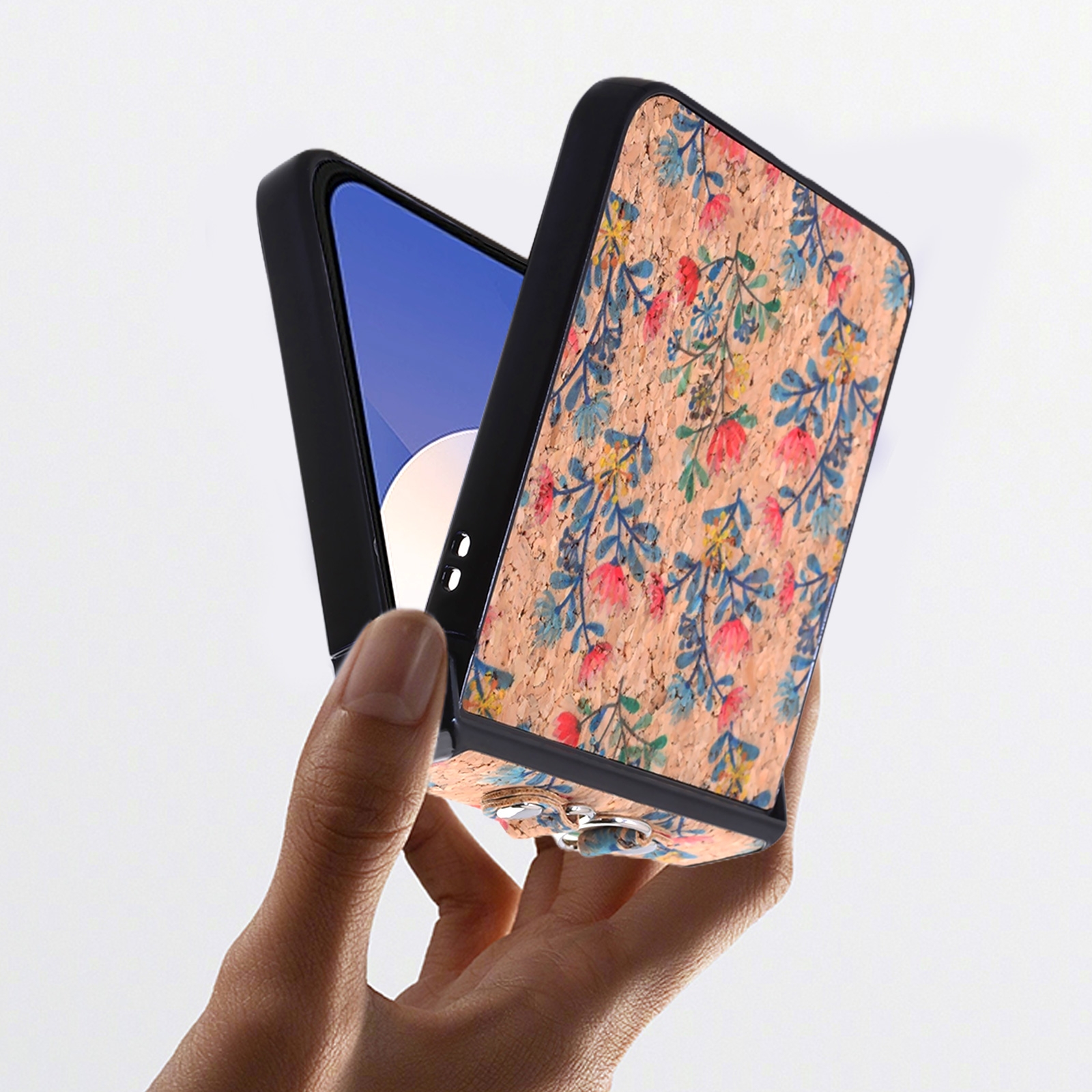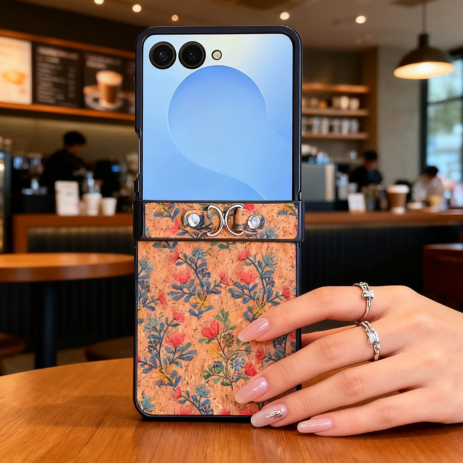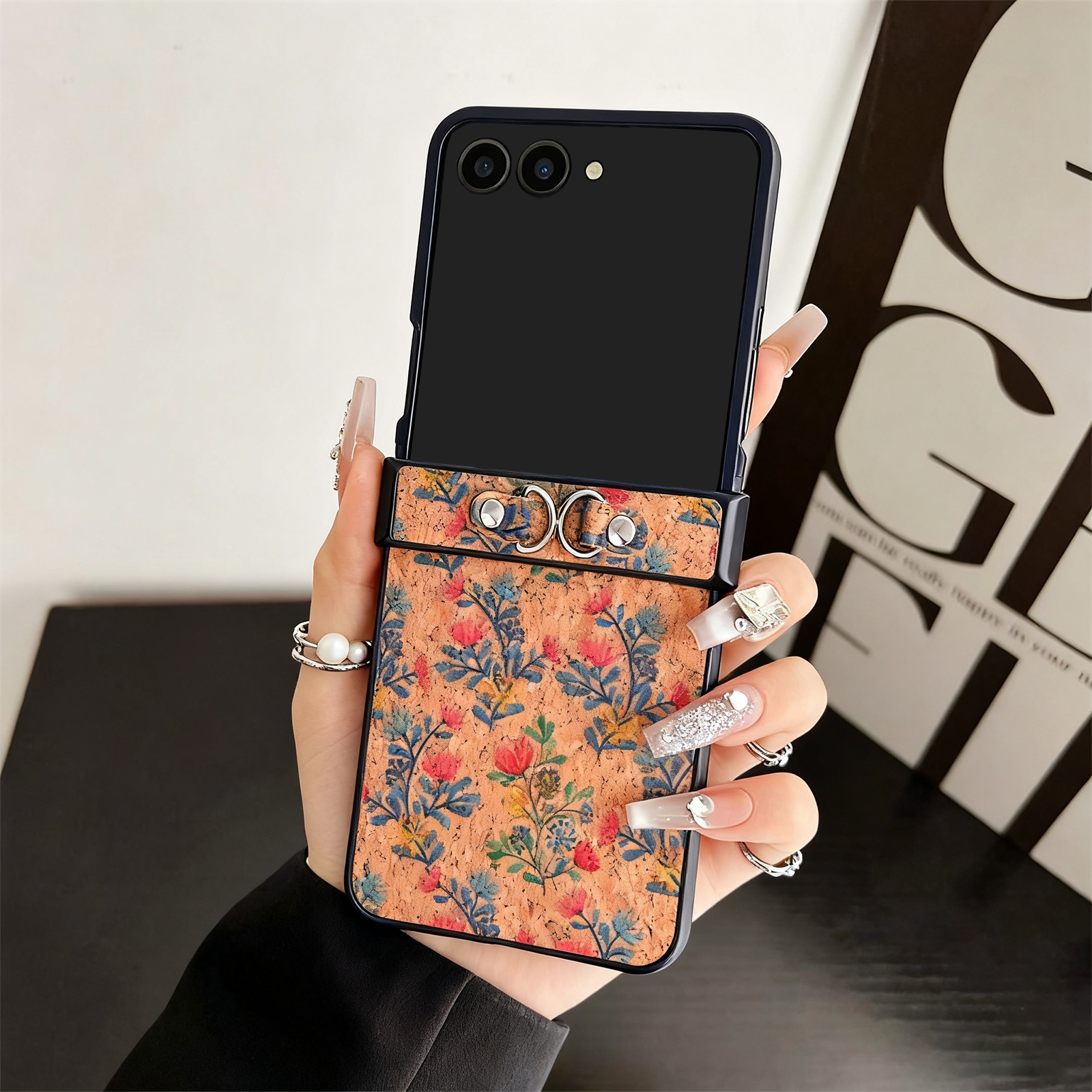 Samsung Z Flip 7 Case Wood Grain with Floral Pattern – Protective Folding Cover