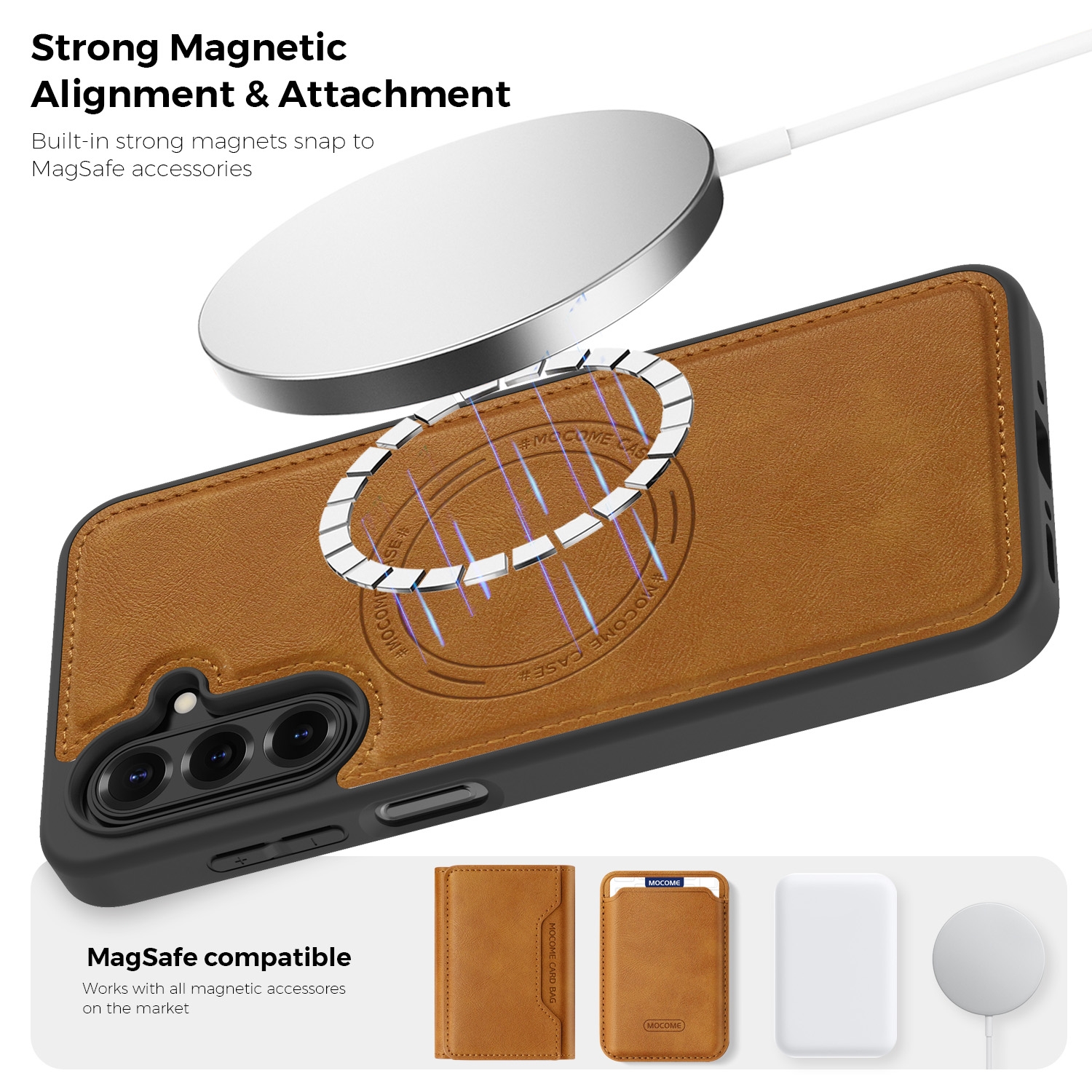 Shockproof PU Back Panel Magnetic Phone Case for S26 Plus, Brown