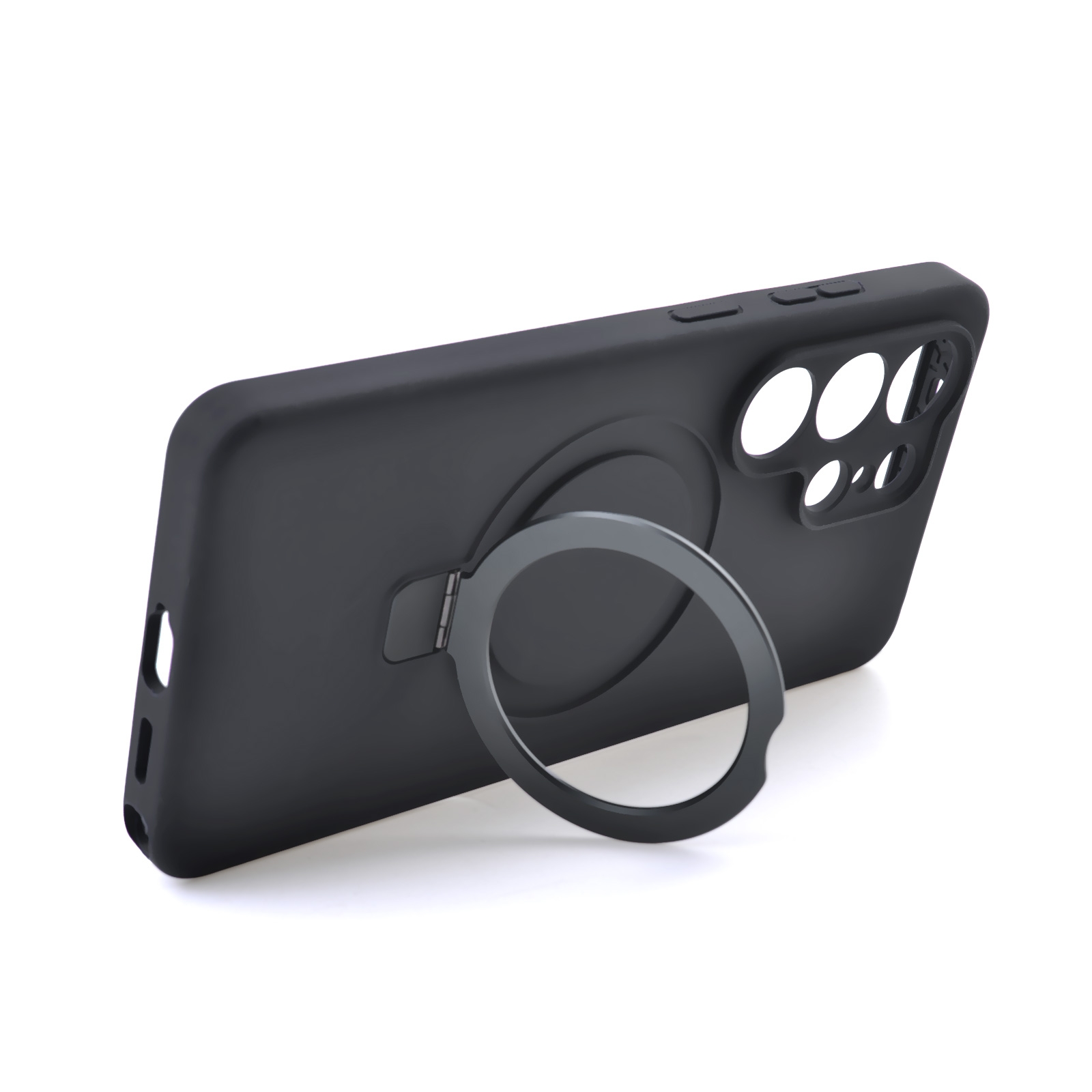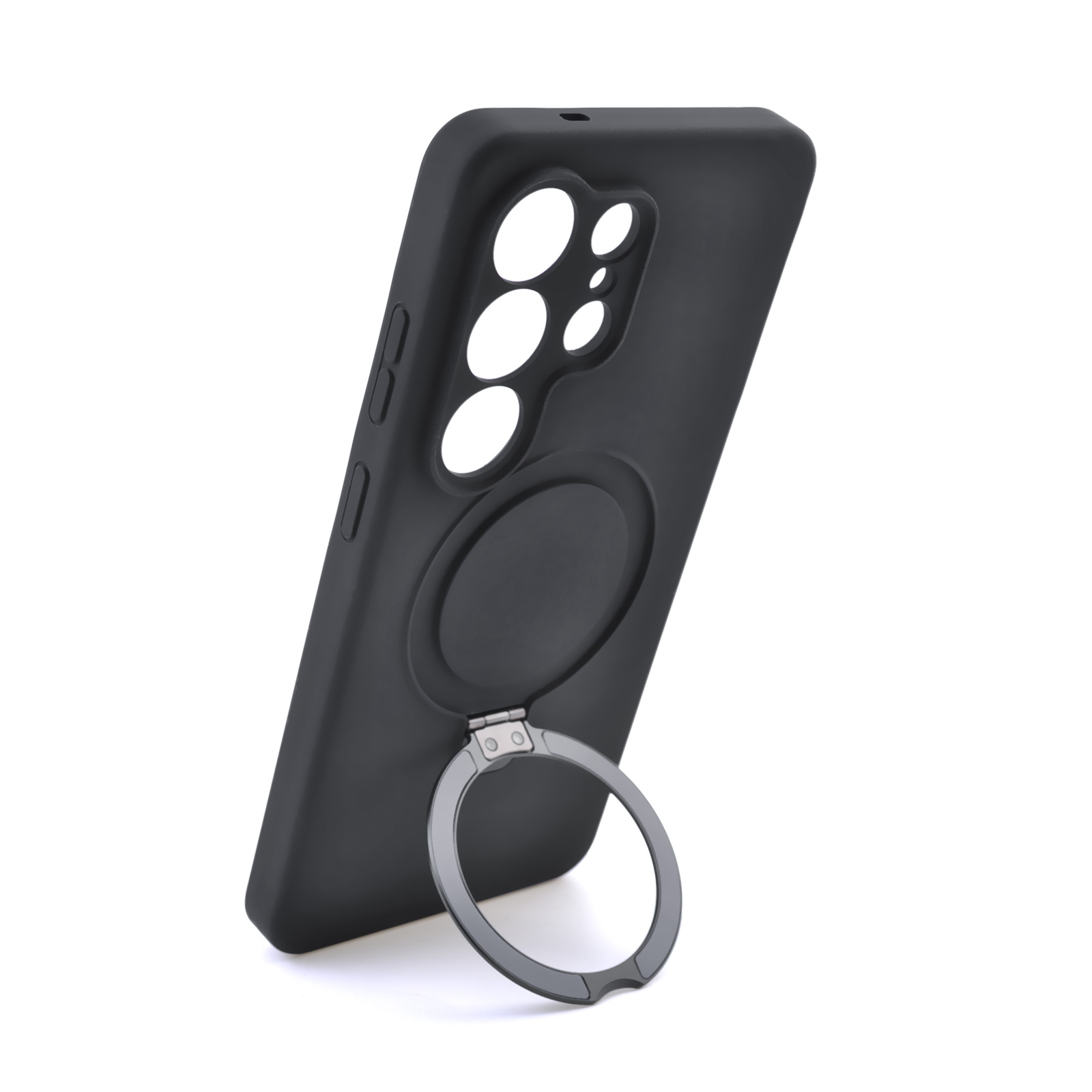 Silicone Magnetic Phone Case for S26 Ultra with Foldable Ring Stand, Black