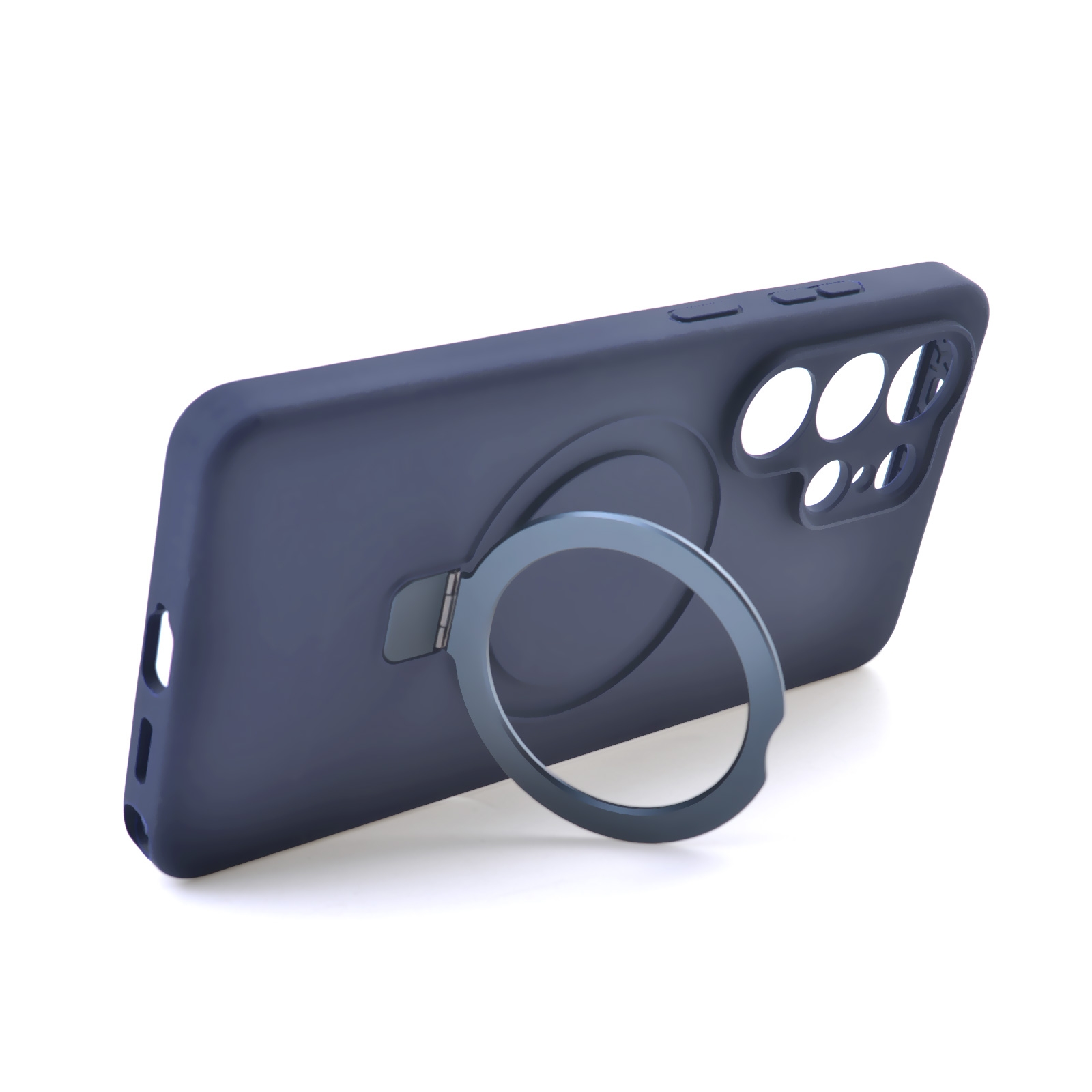 Silicone Magnetic Phone Case for S26 Ultra with Foldable Ring Stand, Dark Blue