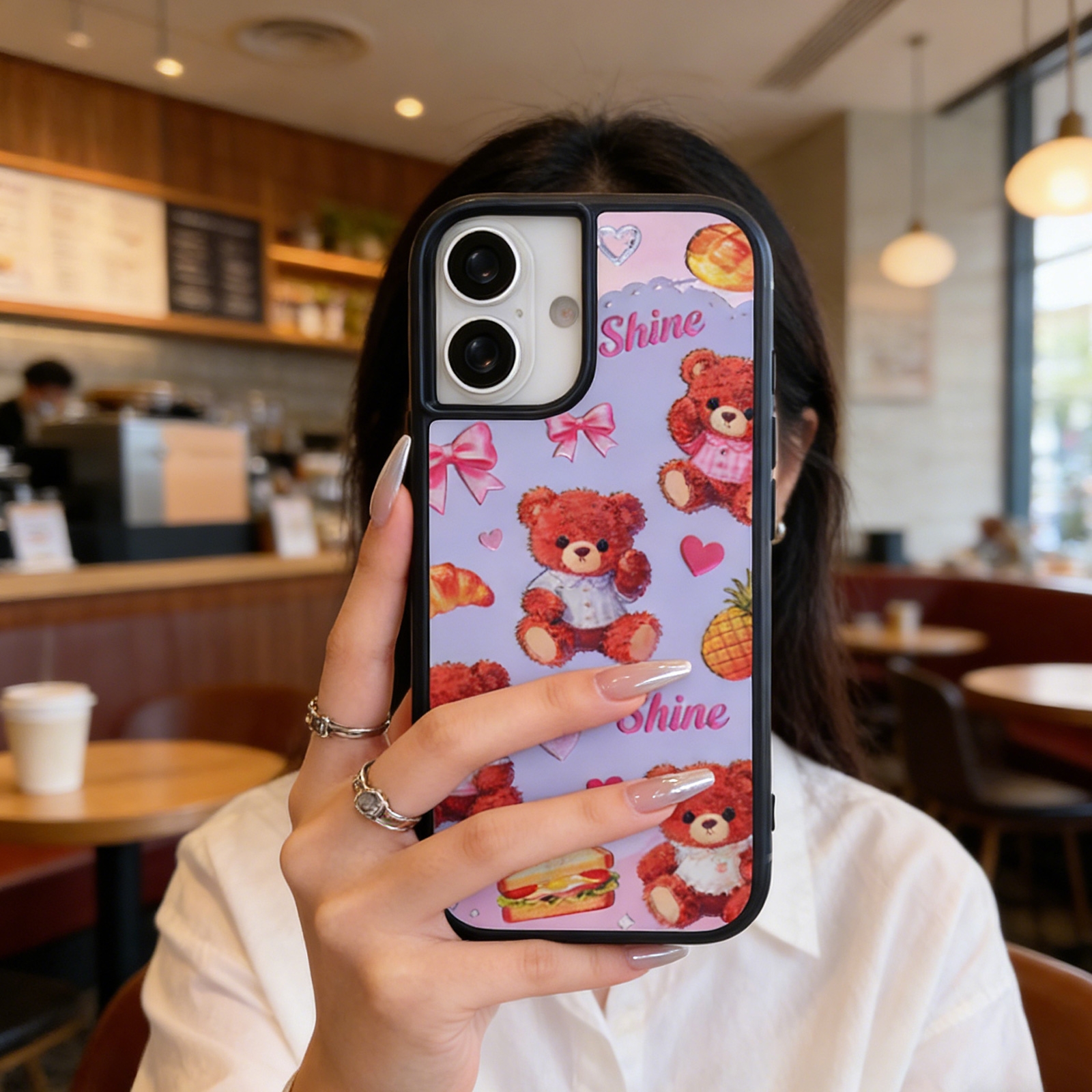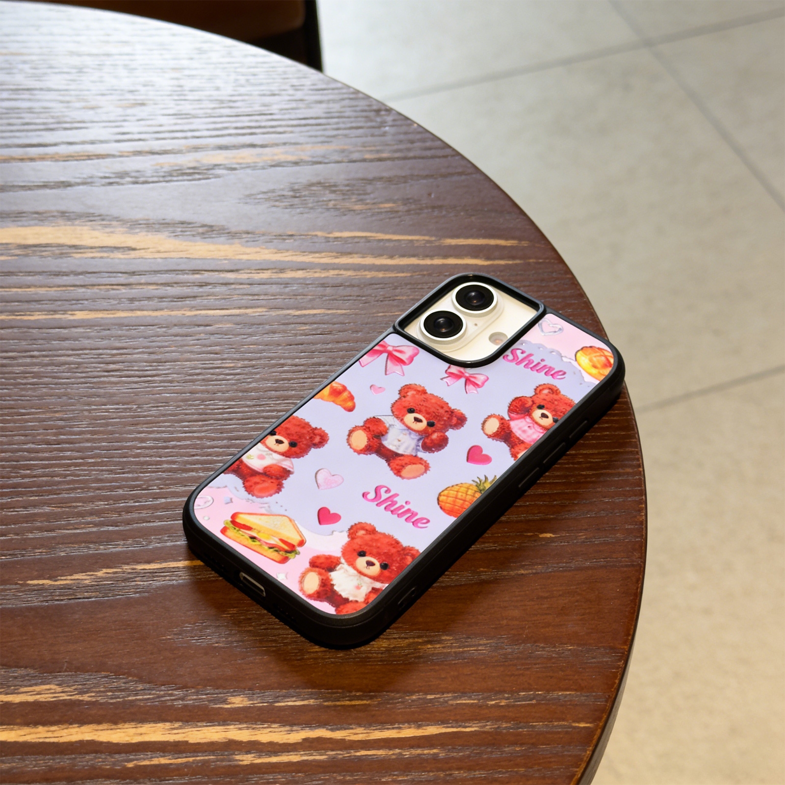 Teddy Bear Magnetic Case for iPhone 17 - Cute Background with Bows & Hearts