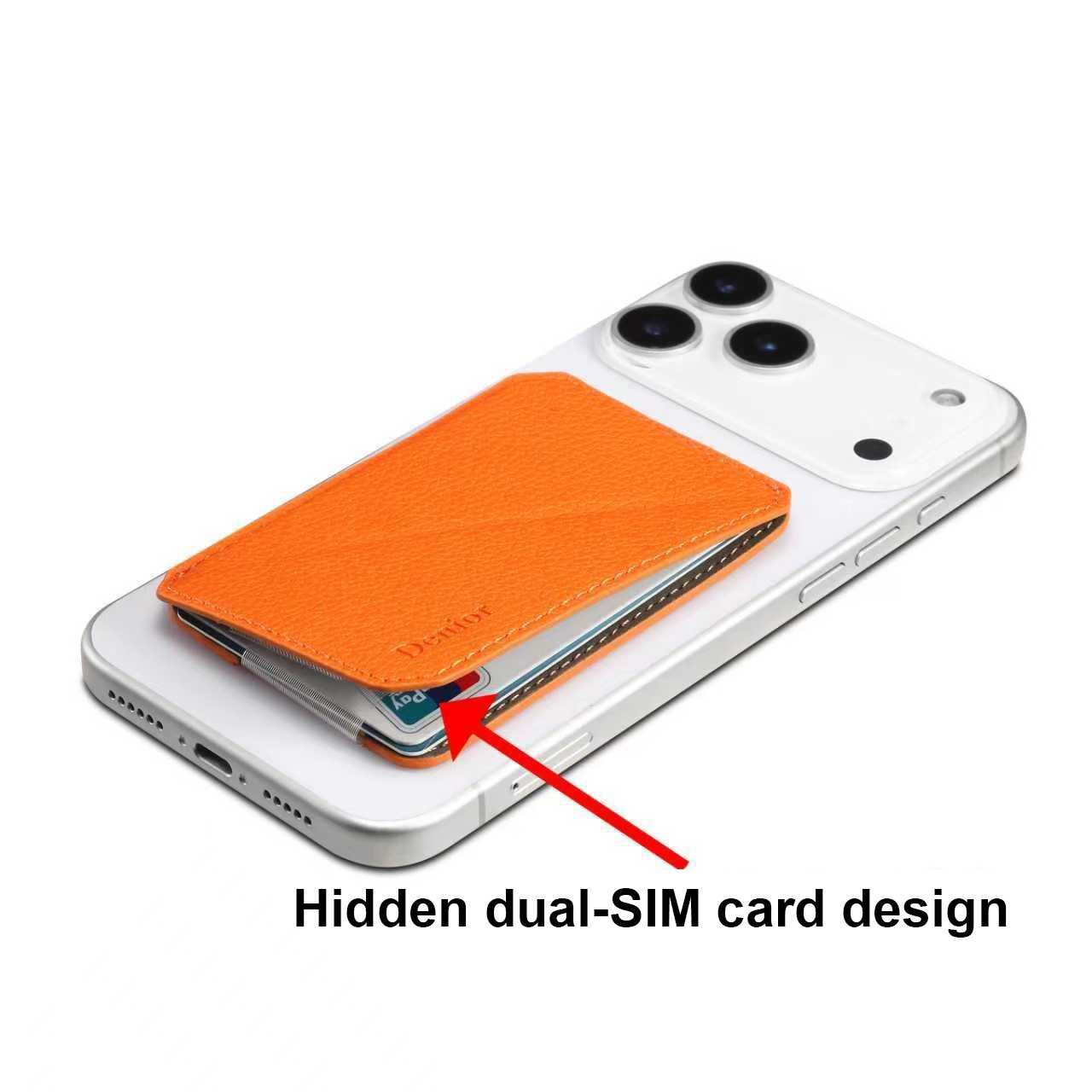 Denior PU Faux Leather Lychee Grain (Togo Grain) RFID Blocking N52 Magnetic Card Holder | PU | Holds 2 Cards - Orange