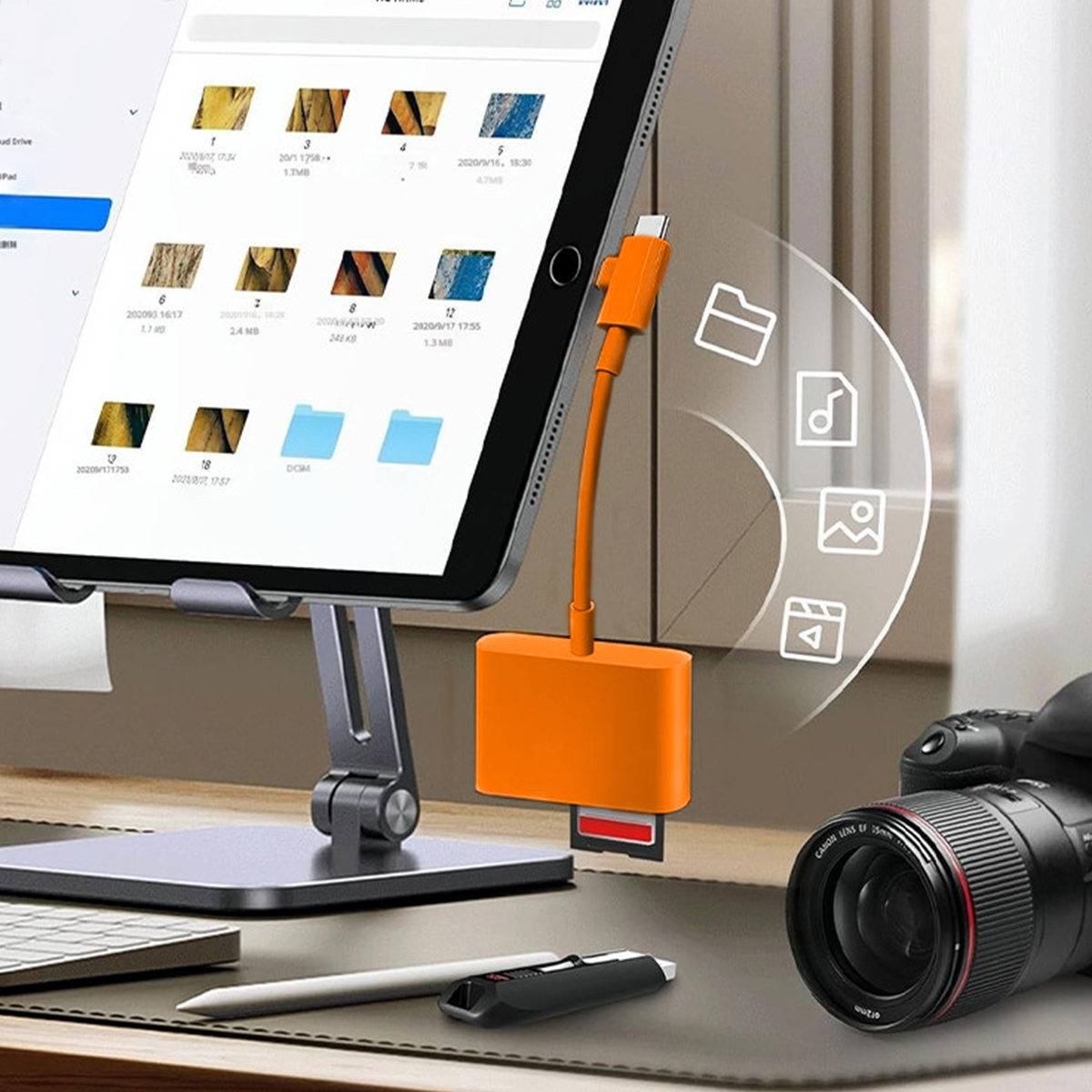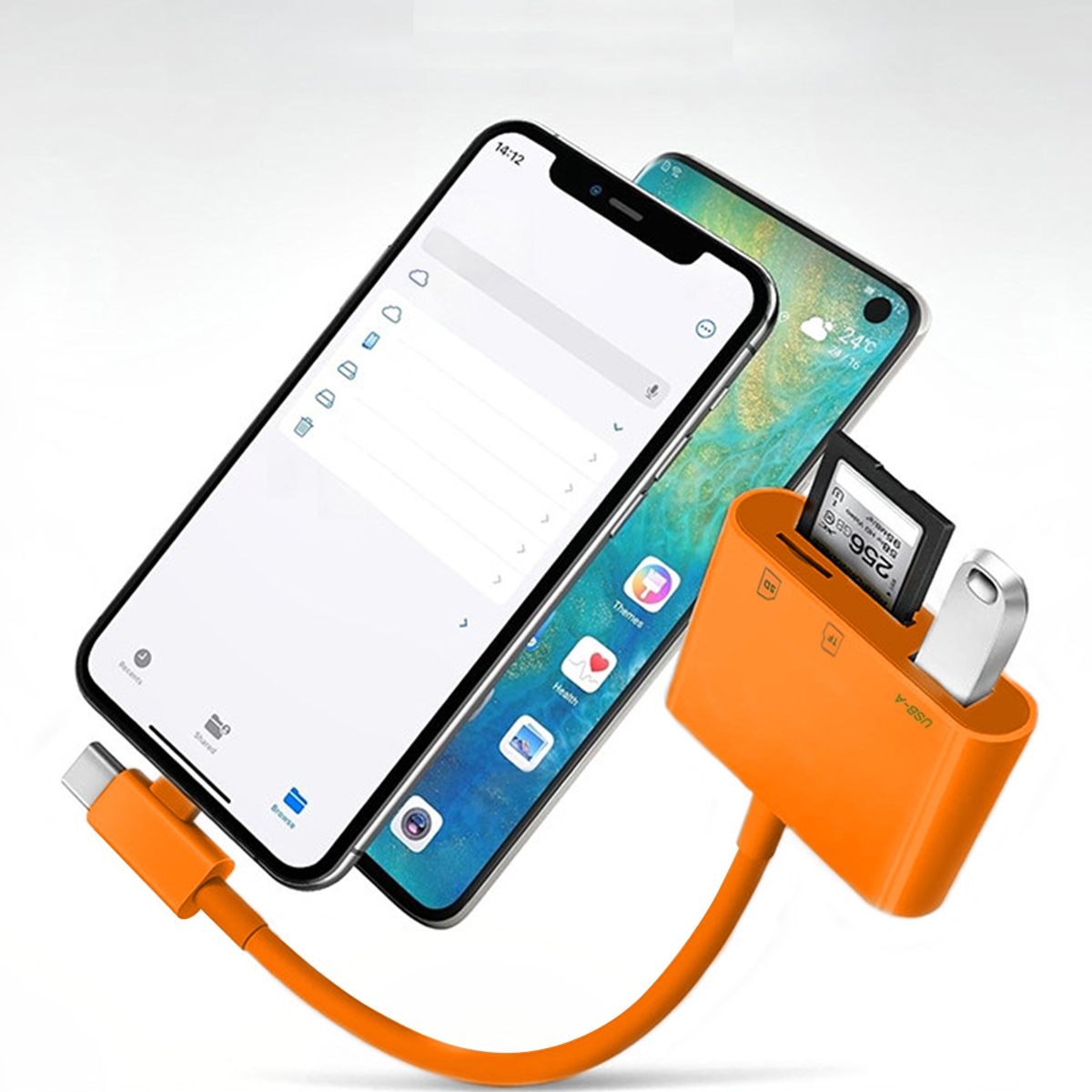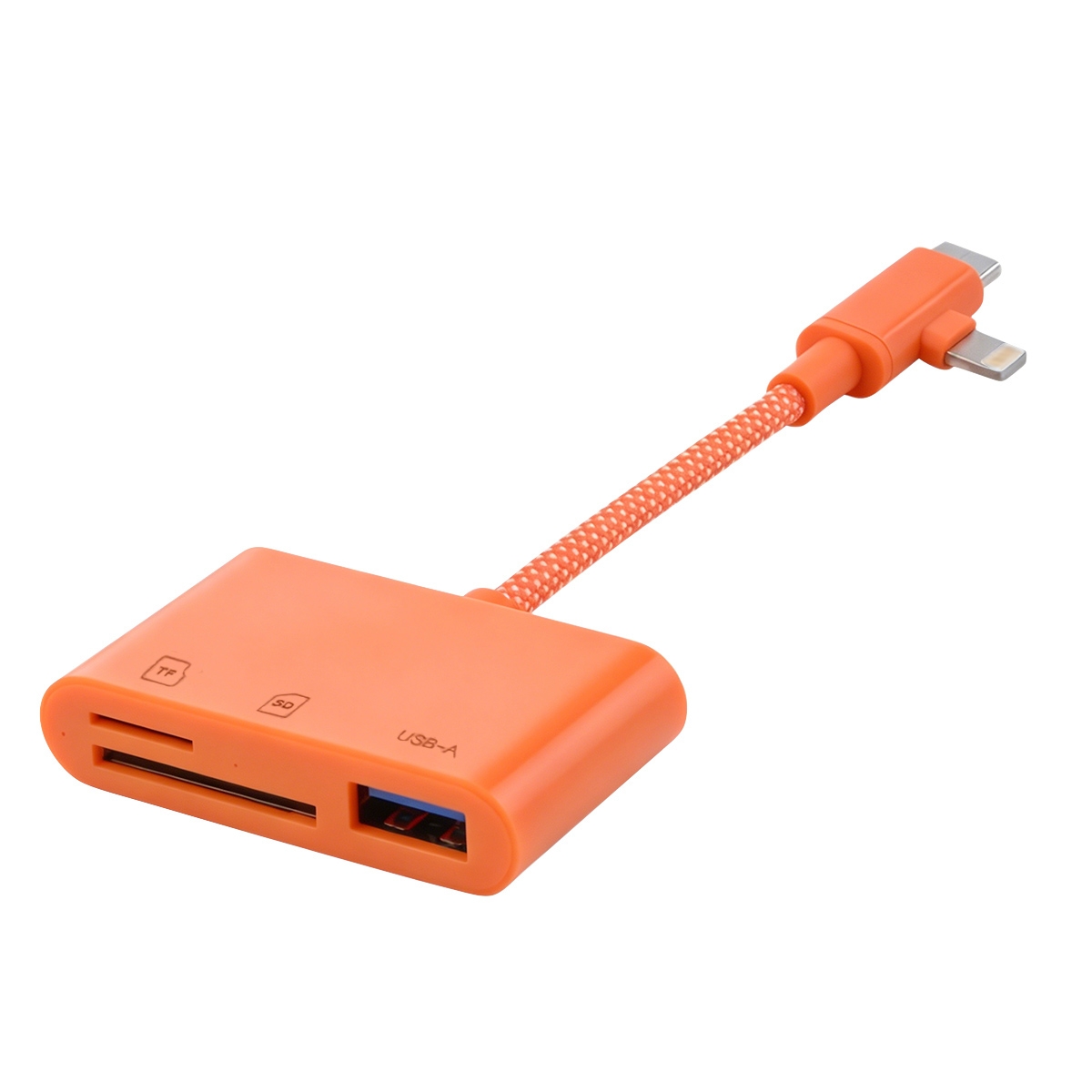 Universal SD or TF Card Reader and OTG Hub for Multi-Port Camera and Moblie, Orange