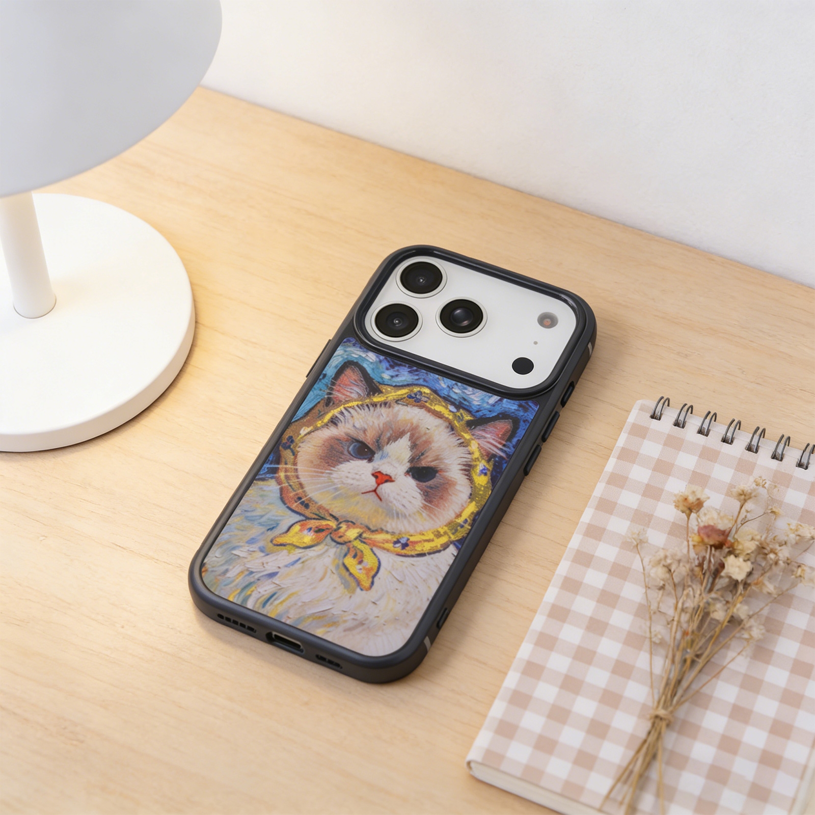 Van Gogh Style Ragdoll Cat Phone Case for iPhone 17 Pro, Blue